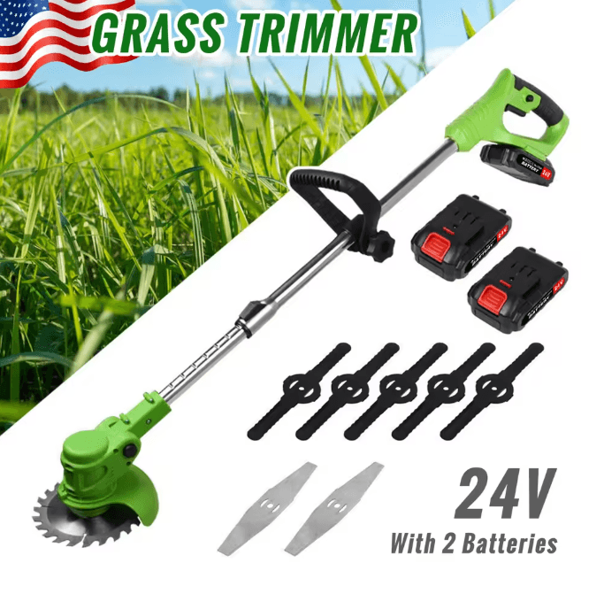 Cordless Grass Trimmer And Weed Wacker With 2 Li Ion Batteries And 3 Blade Types battery