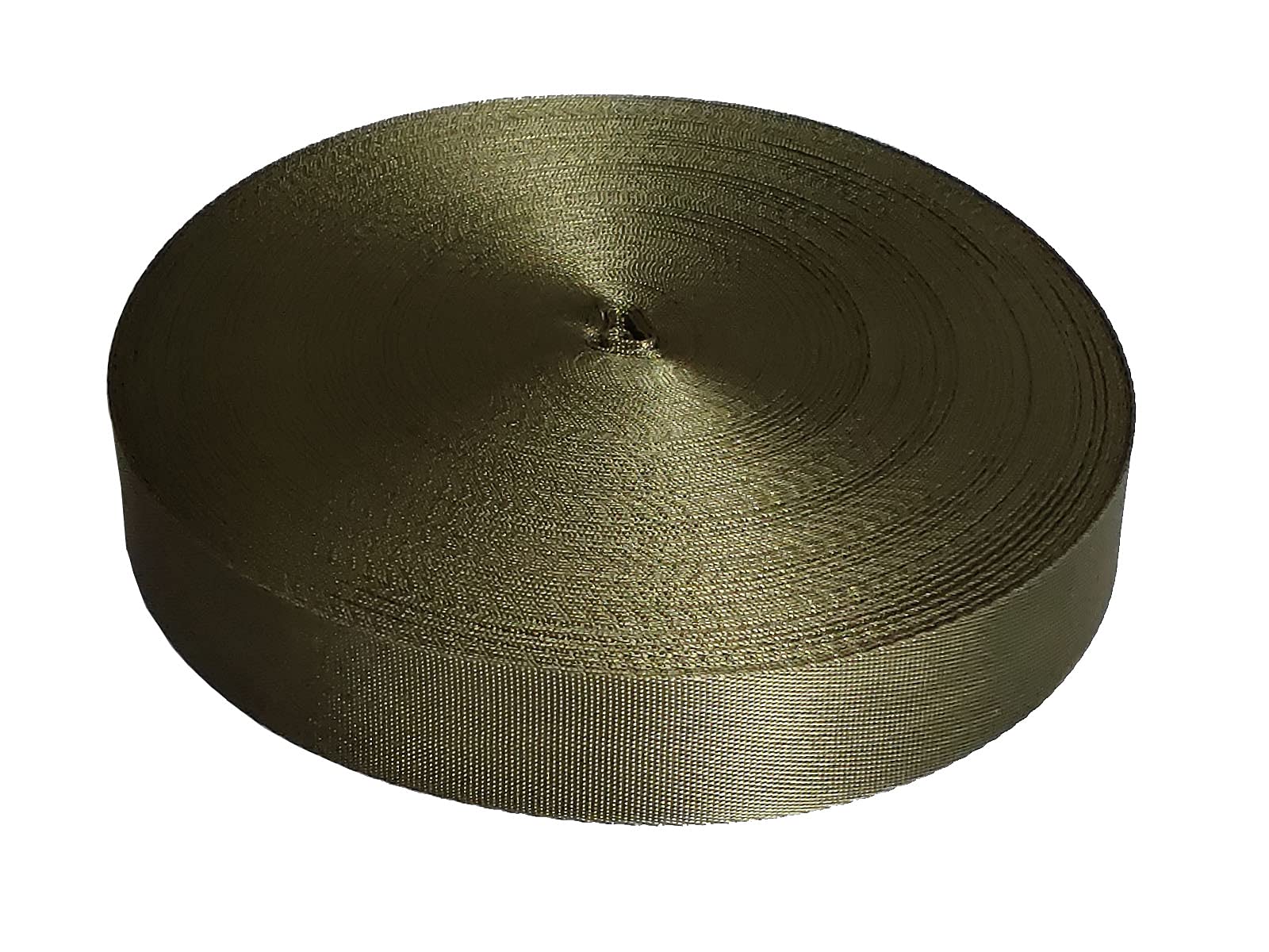 nylon Imported COLOR SIZE THICKNESS AND QUANTITY: Color:Army green. 1.5 inch (3.8 cm) in width. 0.6 mm in thickness. 20 yards in length. MATERIAL:100% nylon.The high quality nylon material ensures excellent wear resistance, UV rays pretection.The nylon producing high strength, enable the nylon webbi