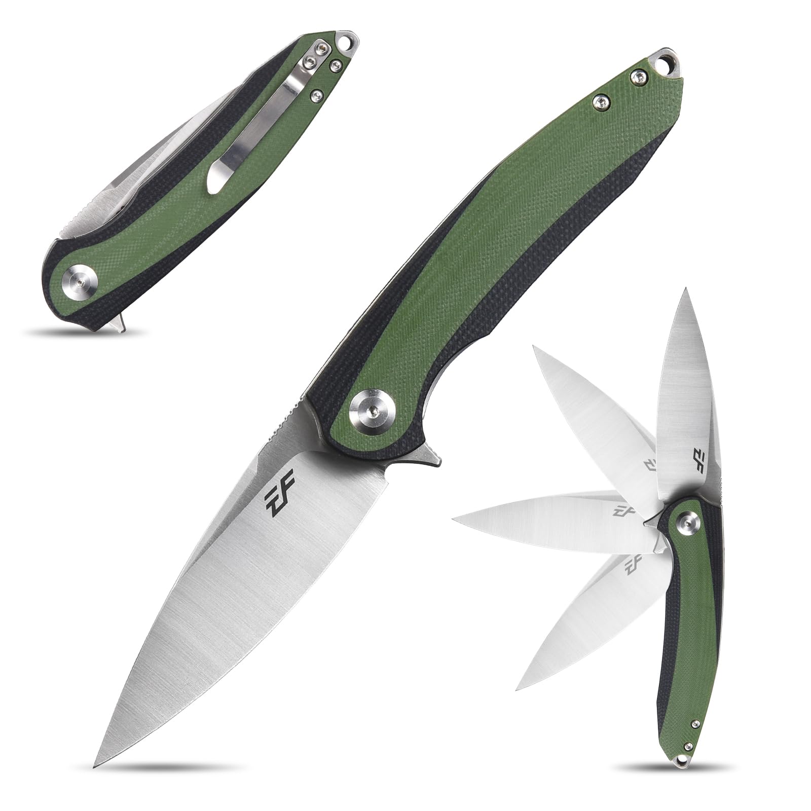 Eafengrow EF954 Folding Knife D2 Steel Blade G10 Handle with Pocket Clip Locking Liner EDC Flipper Knifes for Camping Hiking Outdoor(Green)