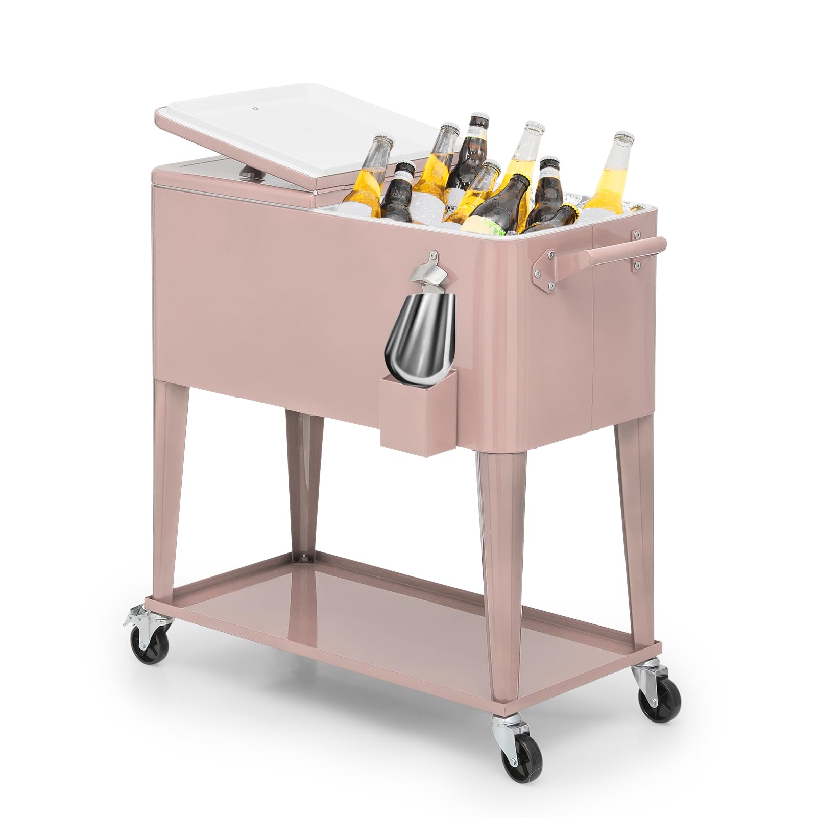 Magshion 80-Quart Patio Rolling Ice Chest Cooler Cart with Bottle Opener, Outdoor Ice Cooler Trolley with Wheels and Handle, Bar Drink Cooler Beverage