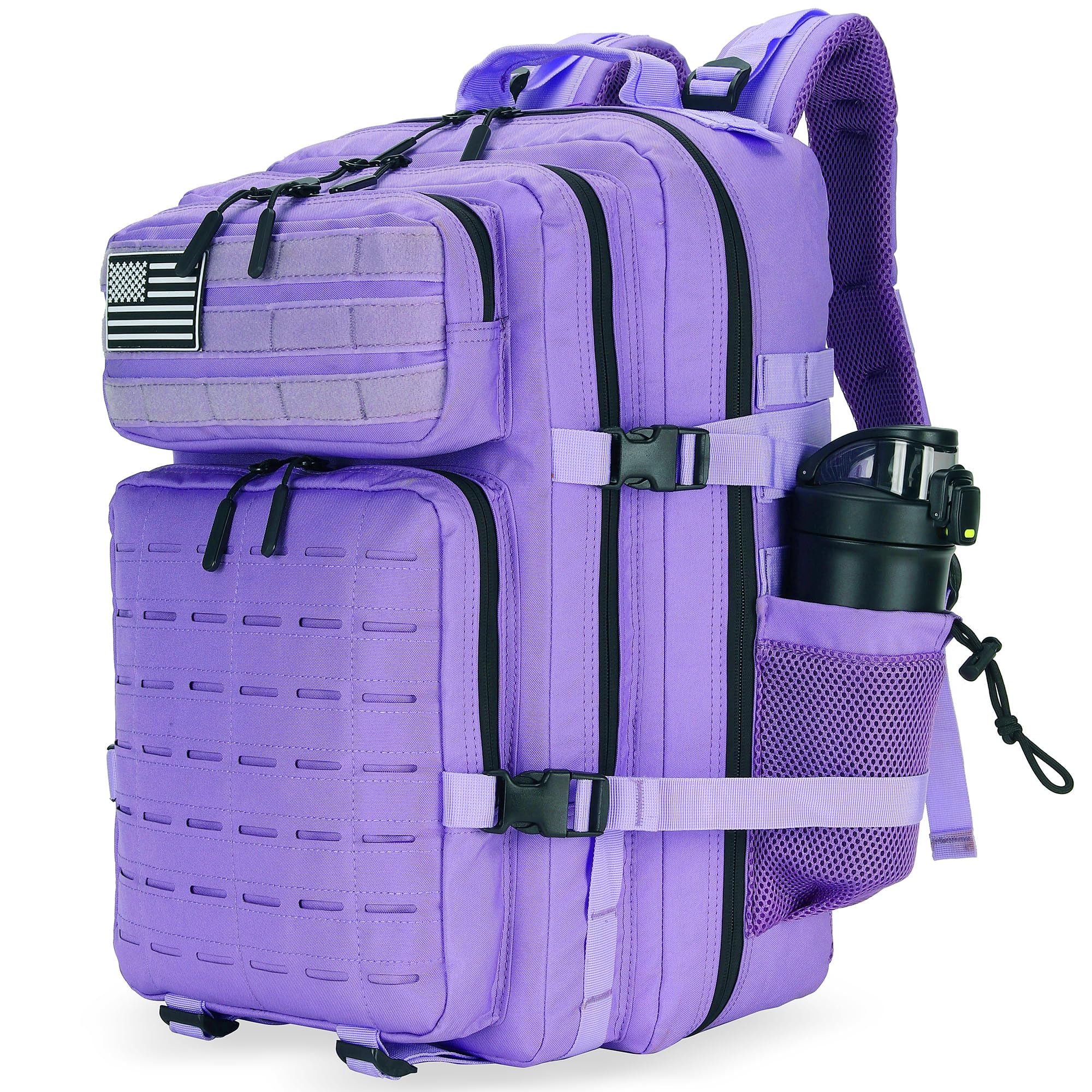 【45L/25L Military Backpack】45L tactical backpack size approx 19.6" x 12" x 12", 25L tactical backpack size approx 15.75" x 10.24" x 10.24", 2 main compartments + 2 front pocket + back compartments + 2 bottle pocket, main compartments with laptop compartment, also can be as hydration compartment,