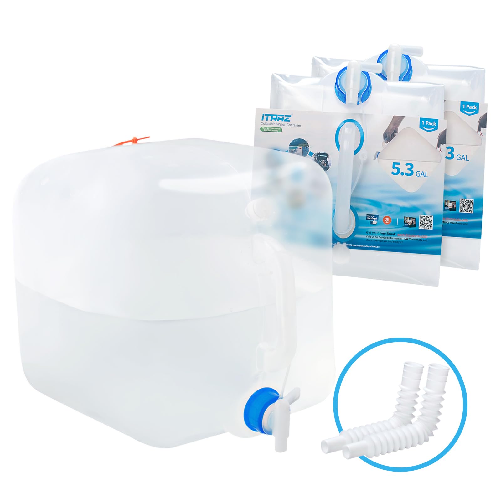 ITRAZ Collapsible Water Container with Spigot, 2×5.3 Gallon BPA Free Camping Water Storage Jug Carrier, for Outdoors Hiking Backpack RV Travel &