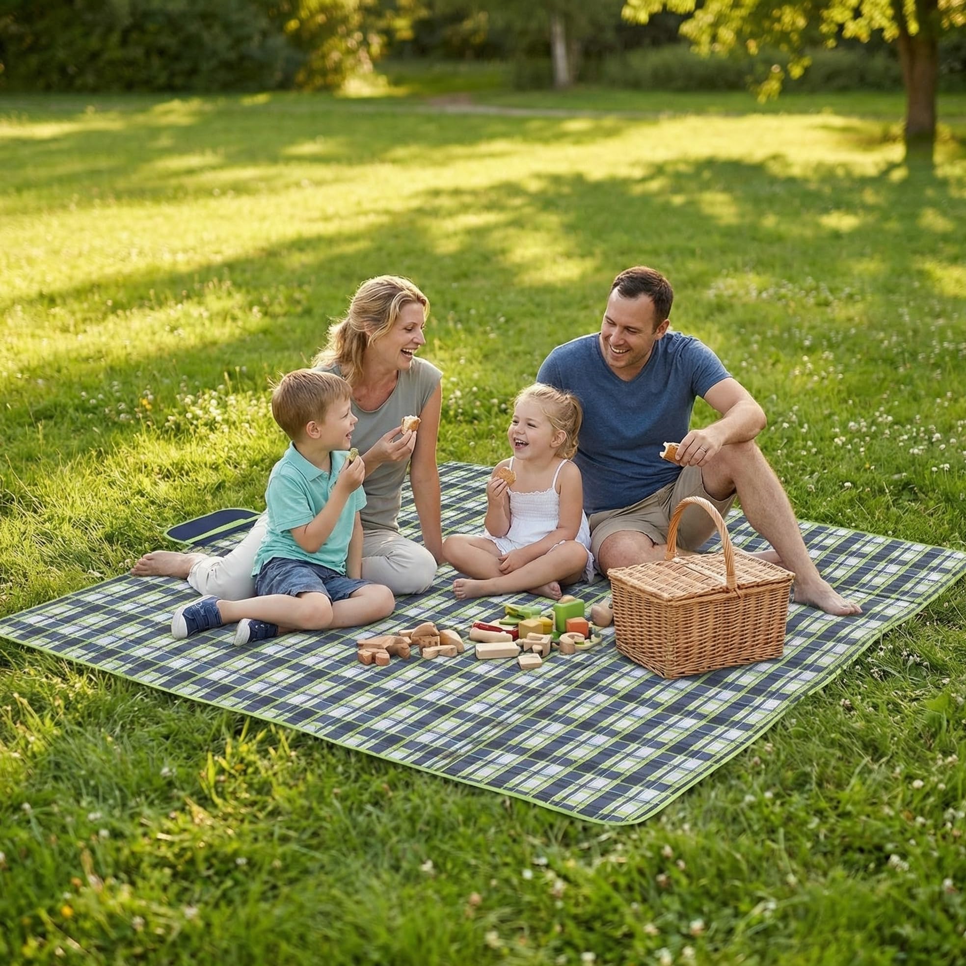 Oversized Picnic Blanket: The extra large lawn blanket measures 79"x77" when unfolded, suitable for 2-4 adults with kids to use. Measures 13.5"x8.5" when folded, easy to compact and fold into an included carry bag. Portable with the built-in handle. Easy to Fold and Clean: Fold and roll up the water