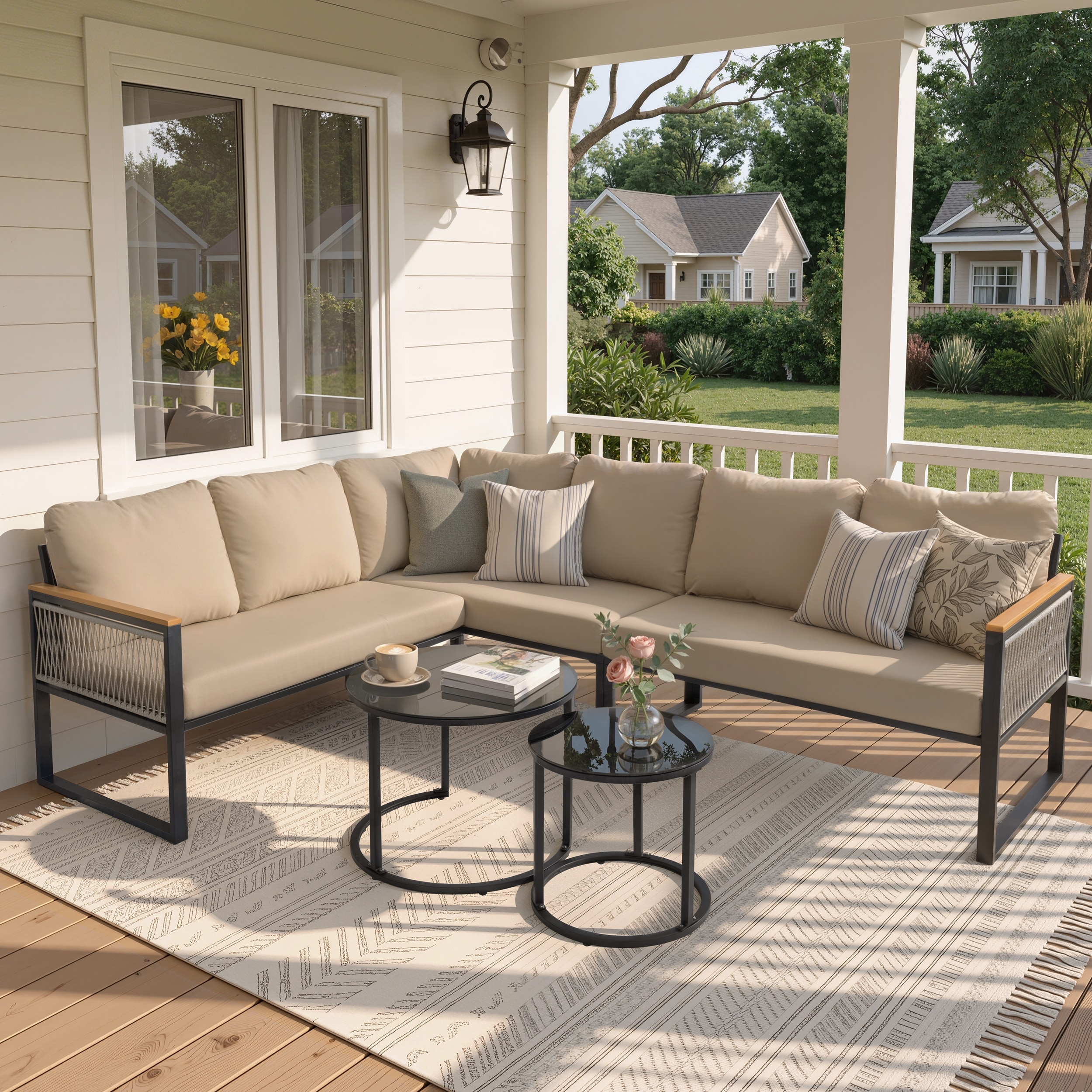Description: Unveil elevated outdoor comfort with the Chelsea Mid-Century Modern 6-Piece Sectional Set, designed to transform patios, decks, and backyards into refined outdoor living spaces.