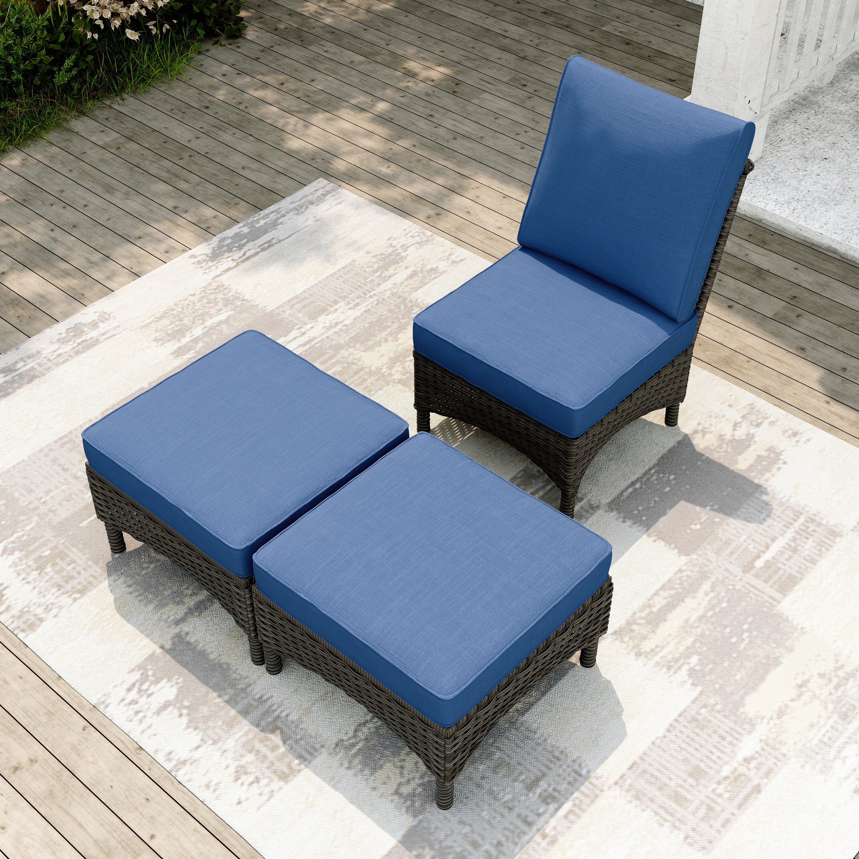 Outdoor Conversation Set with Side Chairs & Coffee Table, Navy Blue Patio Chat Set for Poolside Backyard