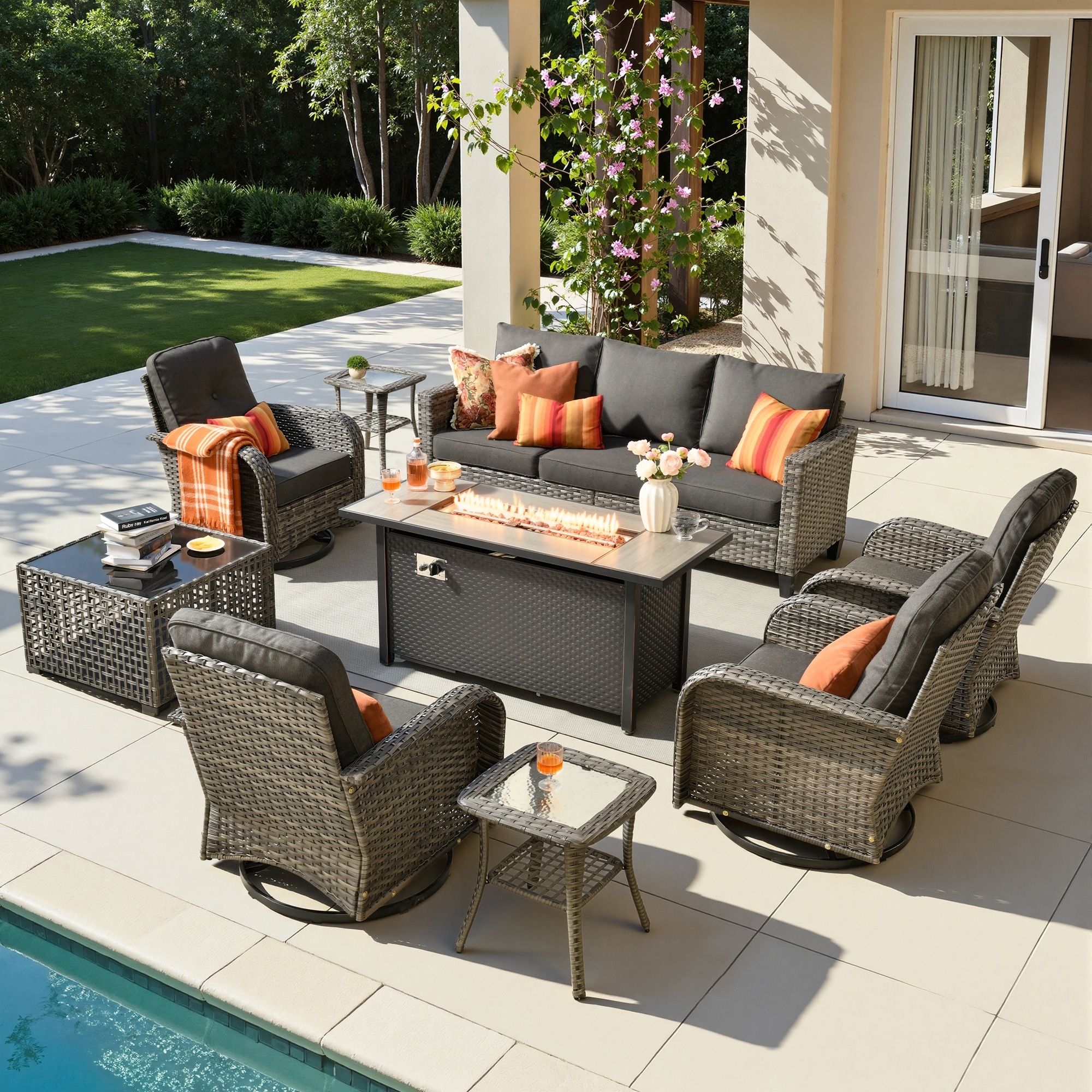 HOOOWOOO 9-piece Patio Conversation Set Outdoor Swivel Chair Set