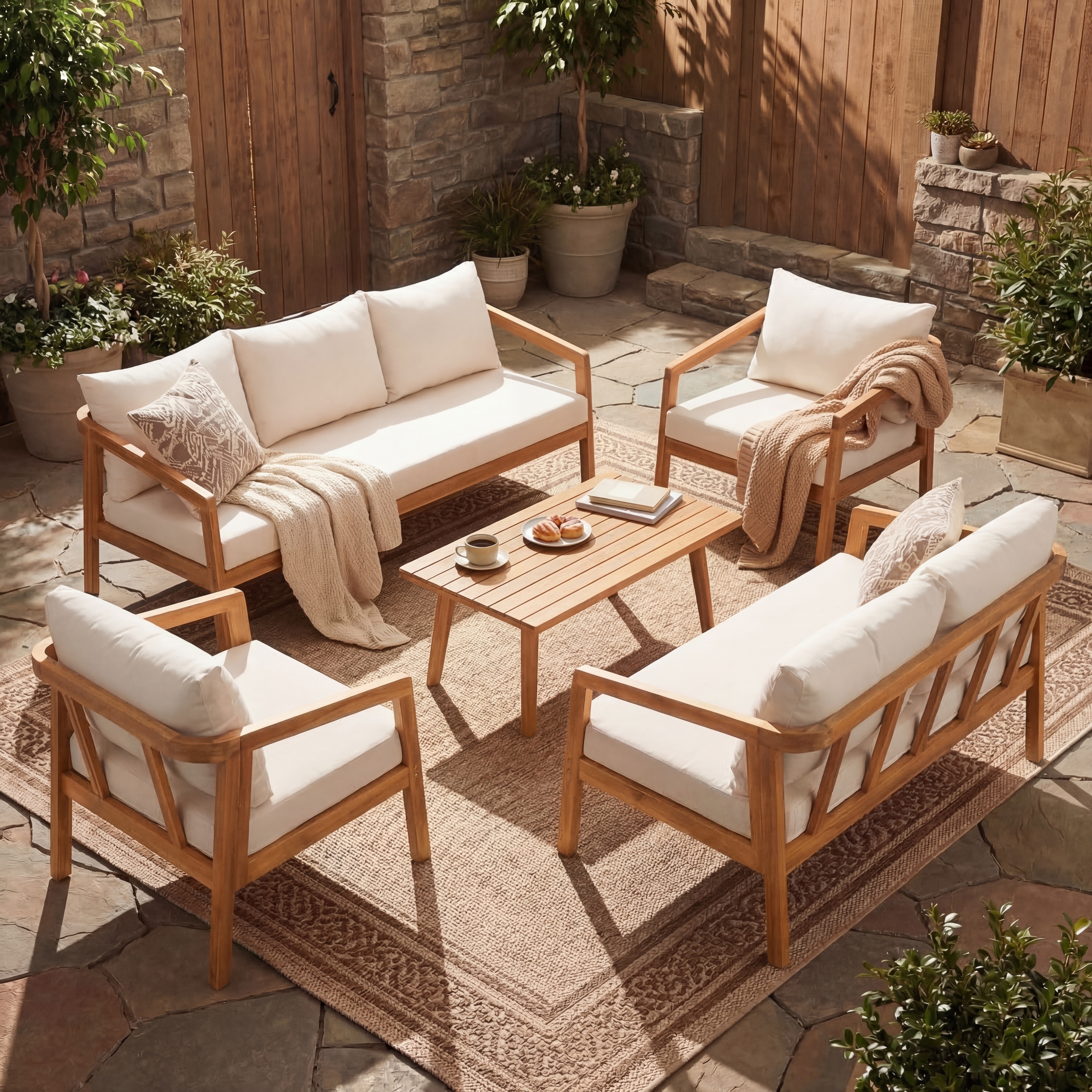 Christopher Knight Home - Modern 5-Piece Outdoor Acacia Wood Patio Conversation Set with Coffee Table & Water-Resistant Cushions