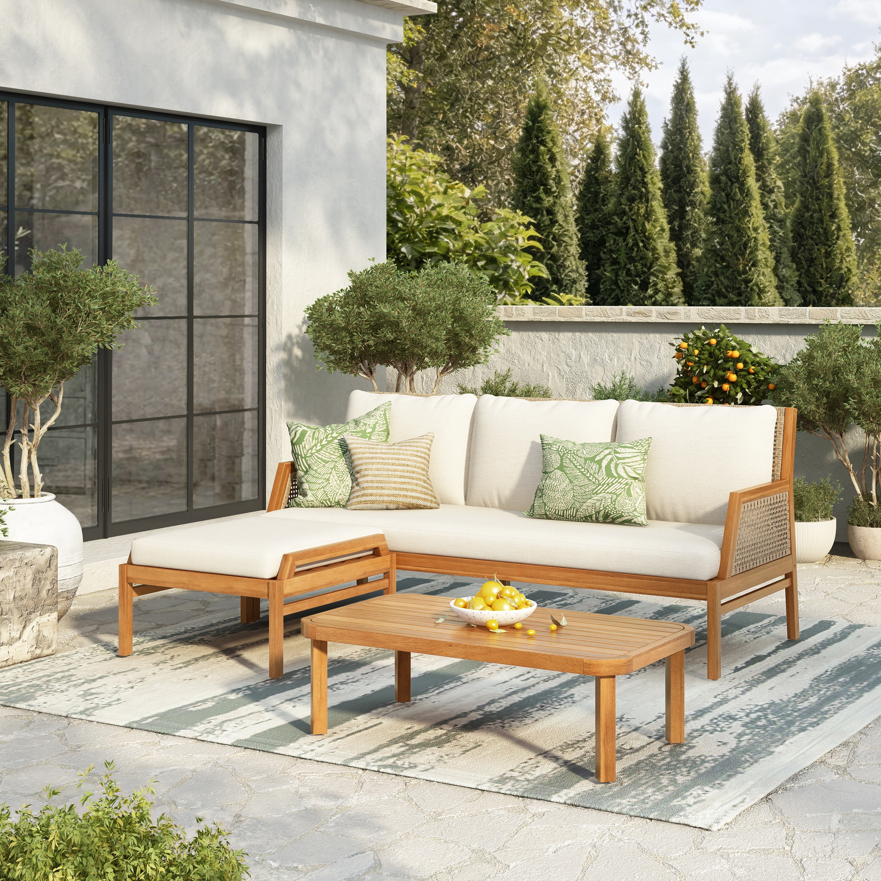 Christopher Knight Home - Modern 3-Piece Outdoor Acacia Wood Wicker Patio Conversation Set with Coffee Table & Ottoman