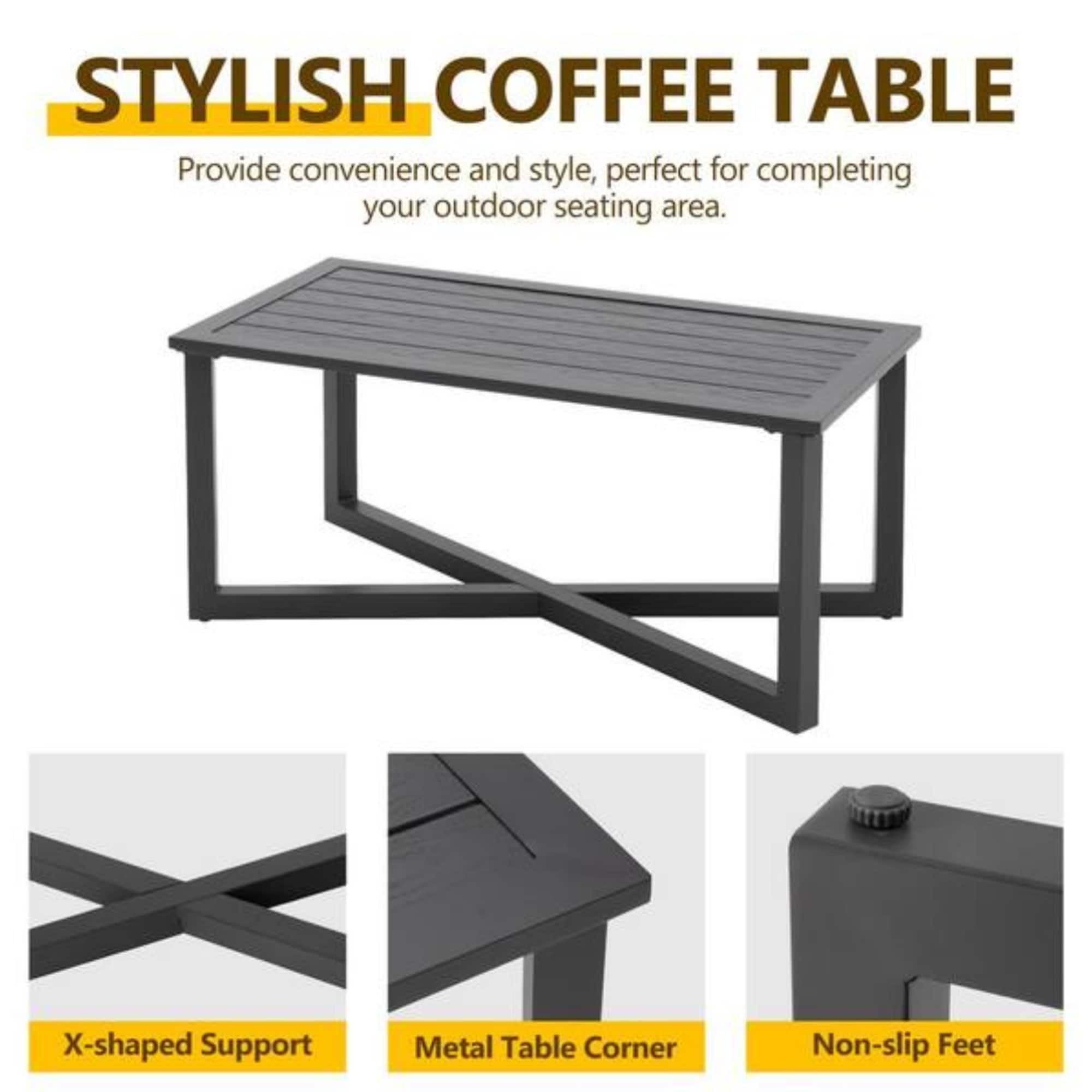 This patio conversation set is developed around a controlled, linear design framework intended to maintain visual order across outdoor living spaces.