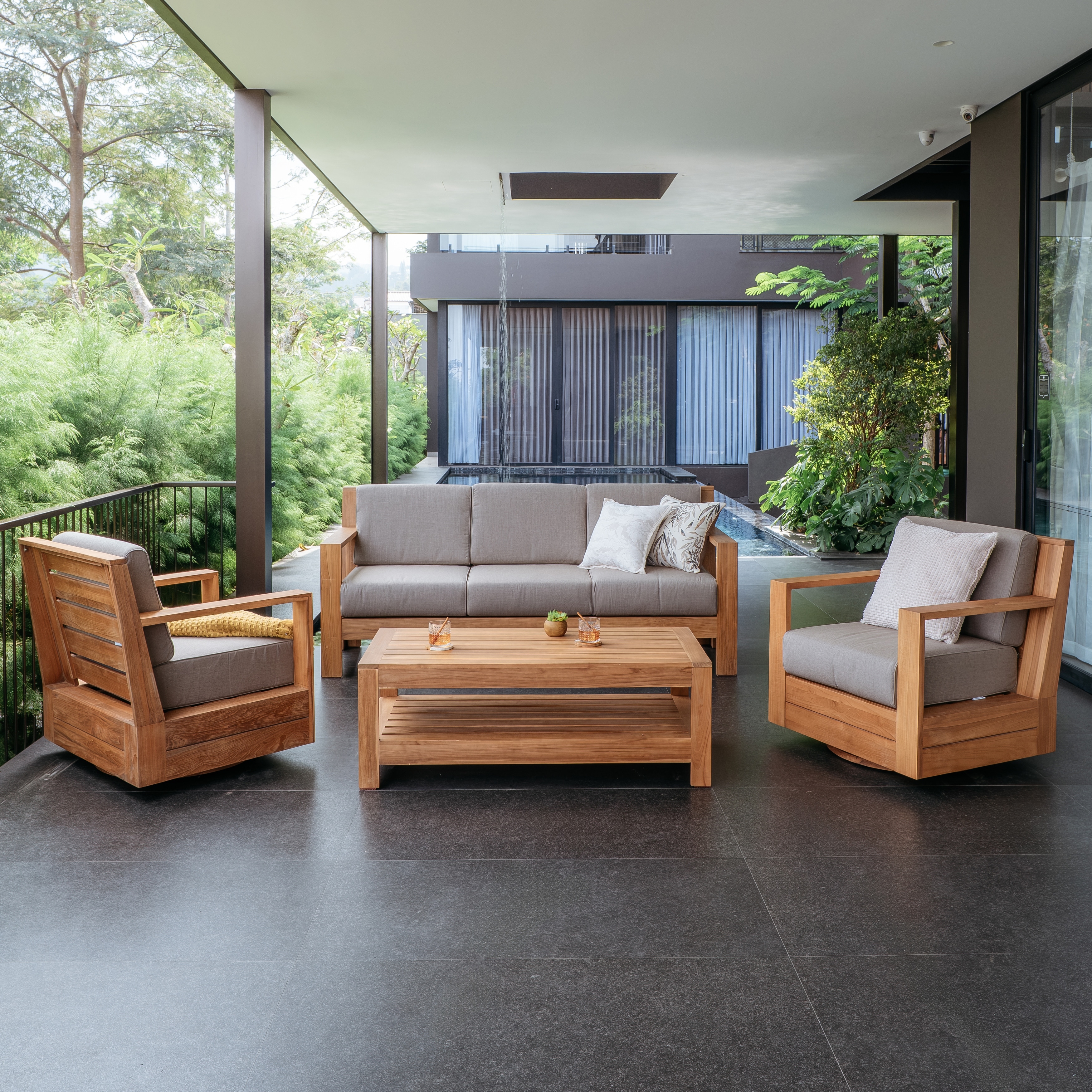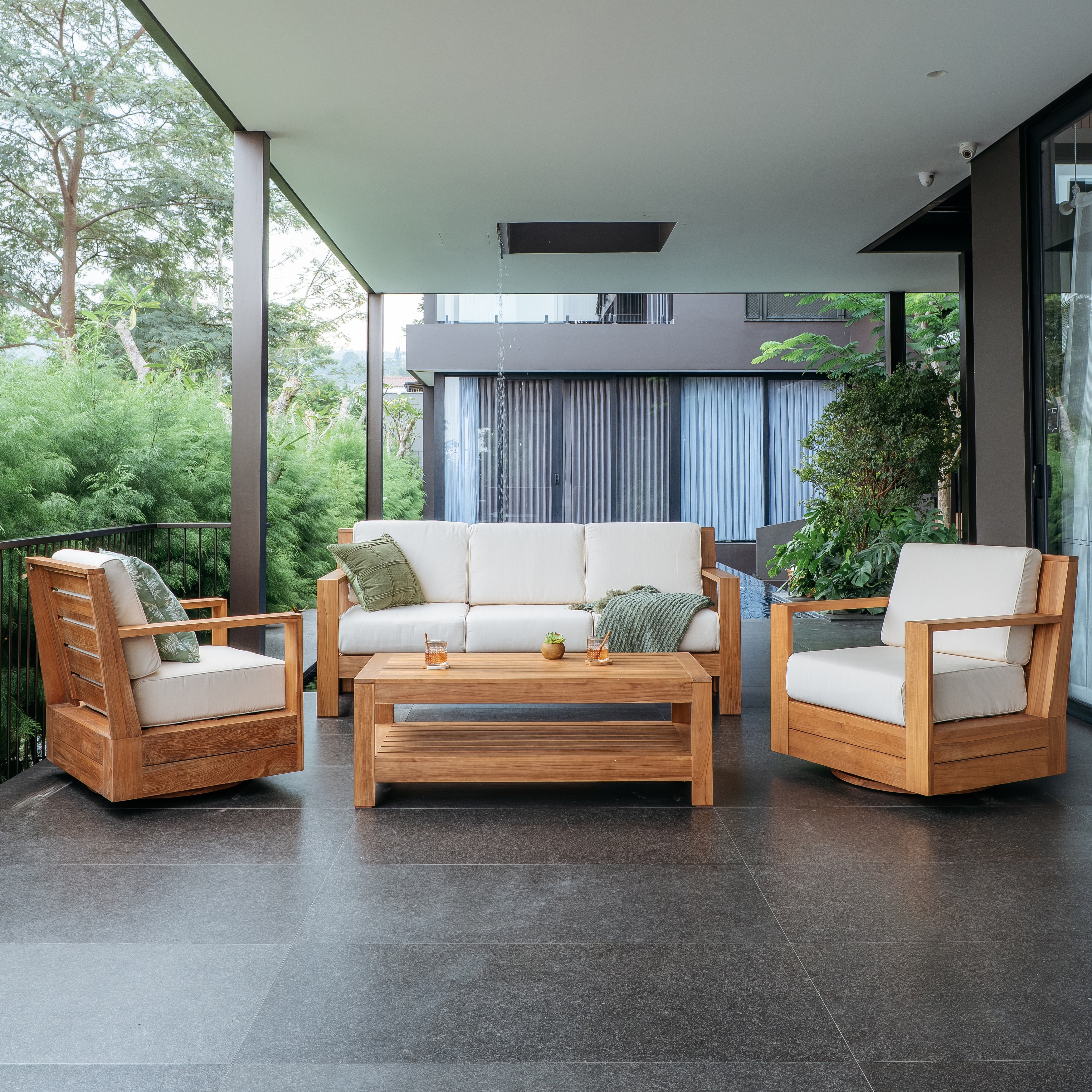 Upgrade your outdoor space with the Robin 4-Piece Teak Patio Conversation Set, perfect for spring and summer. Made from durable Indonesian teak, this outdoor Conversation Set is weather-resistant and built to last.