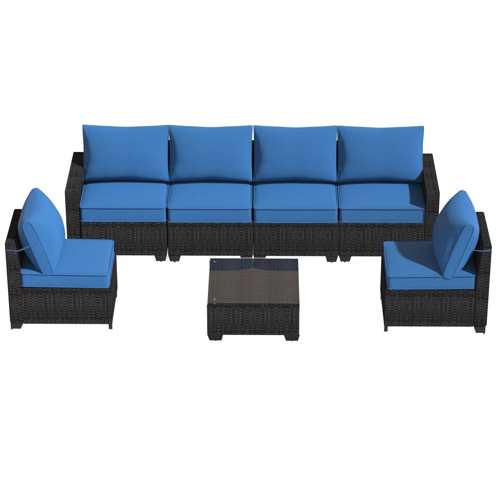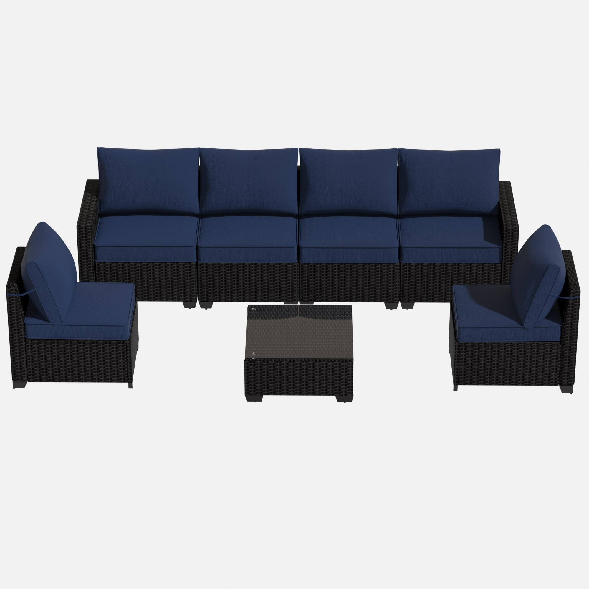 Create a custom outdoor gathering space with this modular 7-piece rattan conversation set. The flexible sectional design lets you arrange the pieces to fit any patio, deck, or backyard layout, whether you want a long sofa or a cozy corner setup.