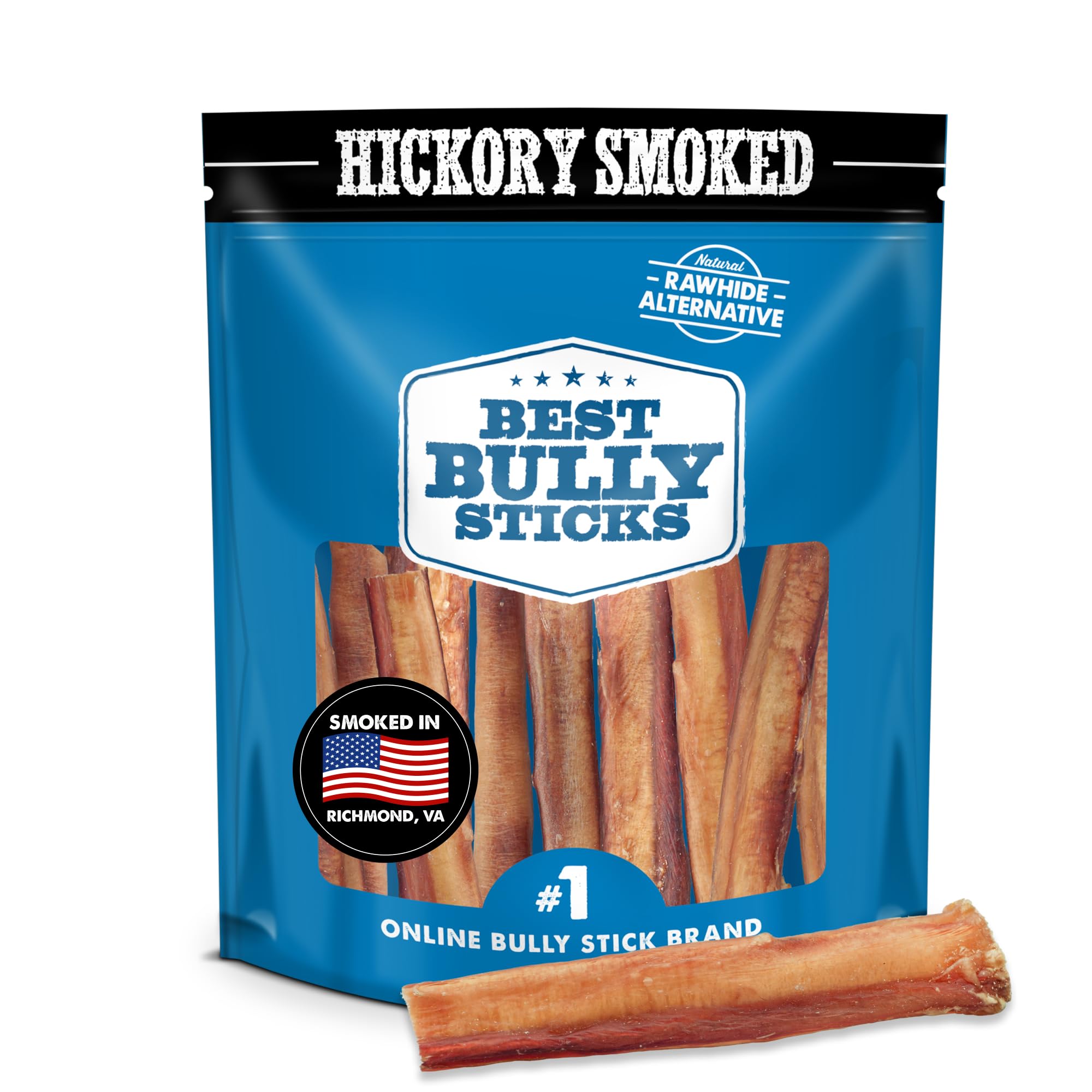 Best Bully Sticks Hickory Smoked Thick 6 Inch Bully Sticks - 10 Count (Pack of 1) - Natural, Grain and Odor-Free, Smoky Aroma, No Additives, Grass-Fed