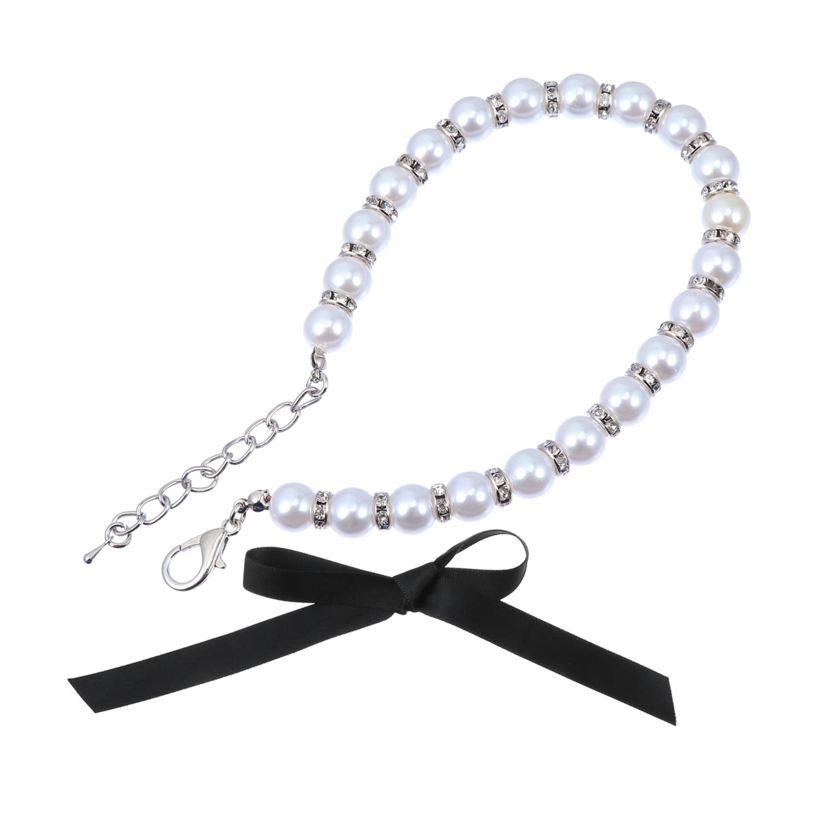 SEWOART Pet Collar Cat Dog Imitation Pearls Elegant Necklace Soft Material Adjustable Buckle for Daily Holiday