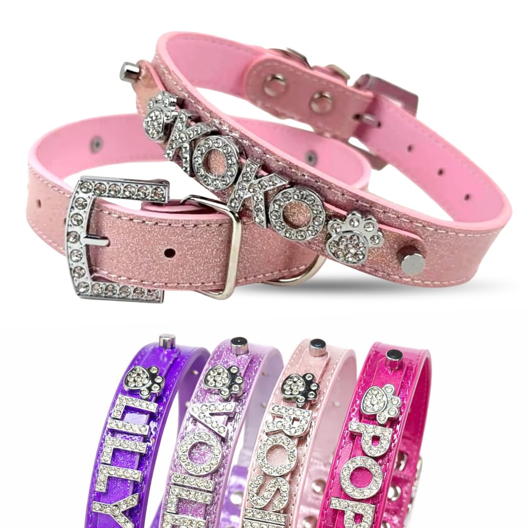 Rhinestone Dog Collar | Light Pink Sparkle | Personalized Dog Collar | Rose Gold Dog Collar | Size XL