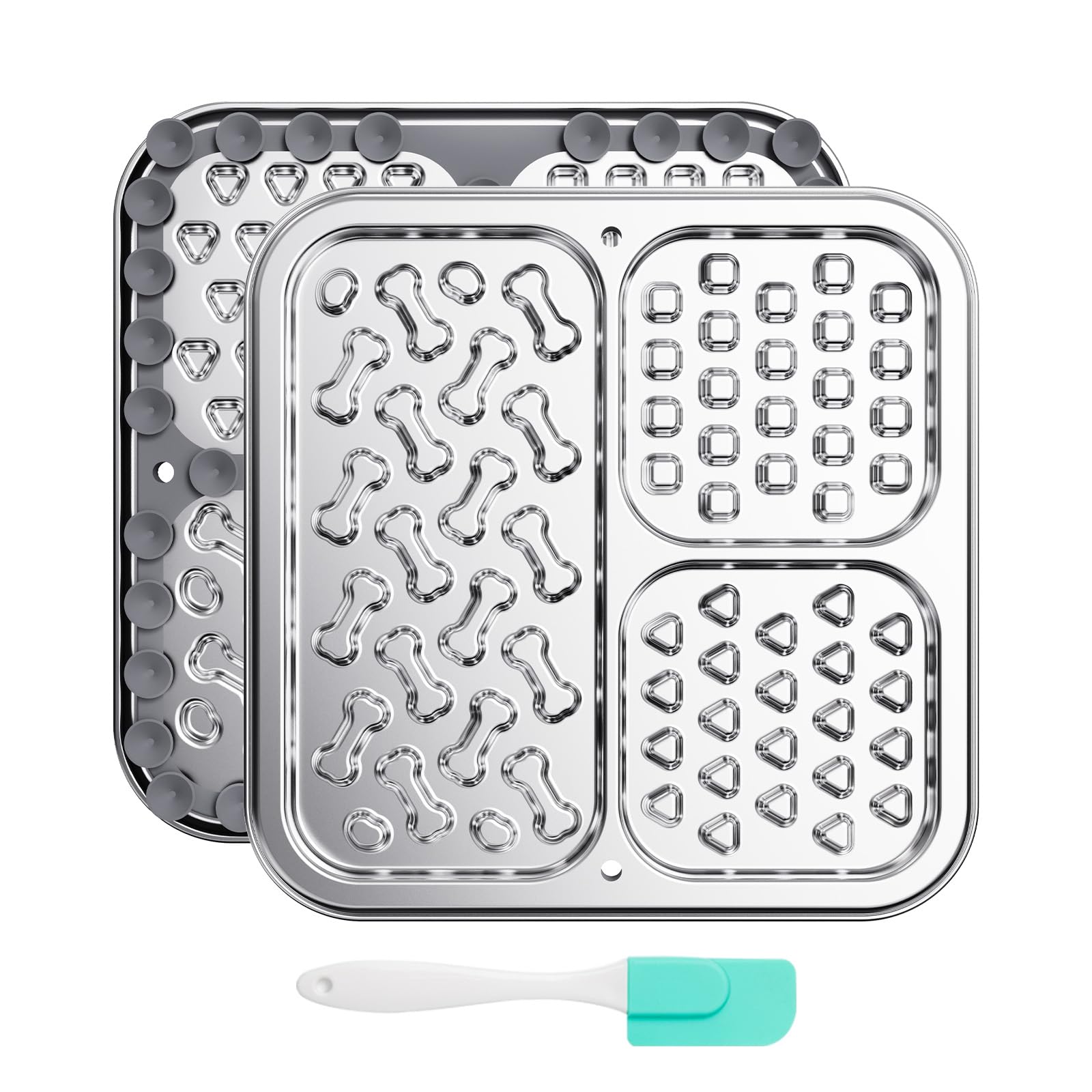 Three Ways to Use – Floor, Wall or Crate: Designed with 46 strong suction cups, this stainless steel lick mat sticks firmly to floors, walls, or inside dog crates, keeping pups engaged during bathing, grooming or feeding Three Textured Zones for Different Foods: Features three independent textured