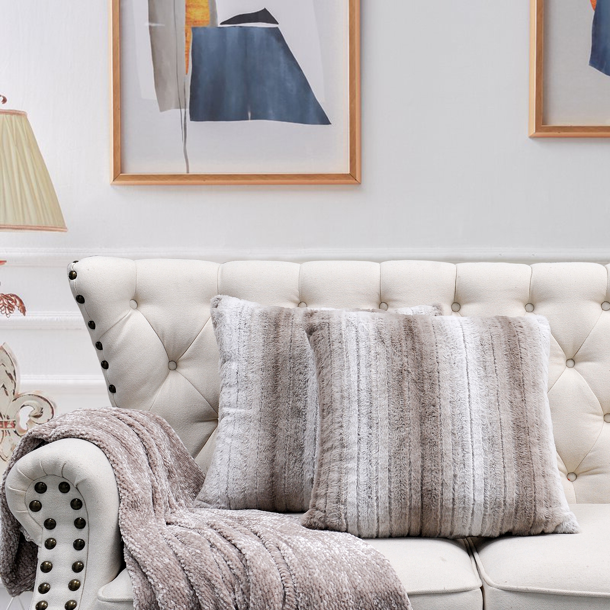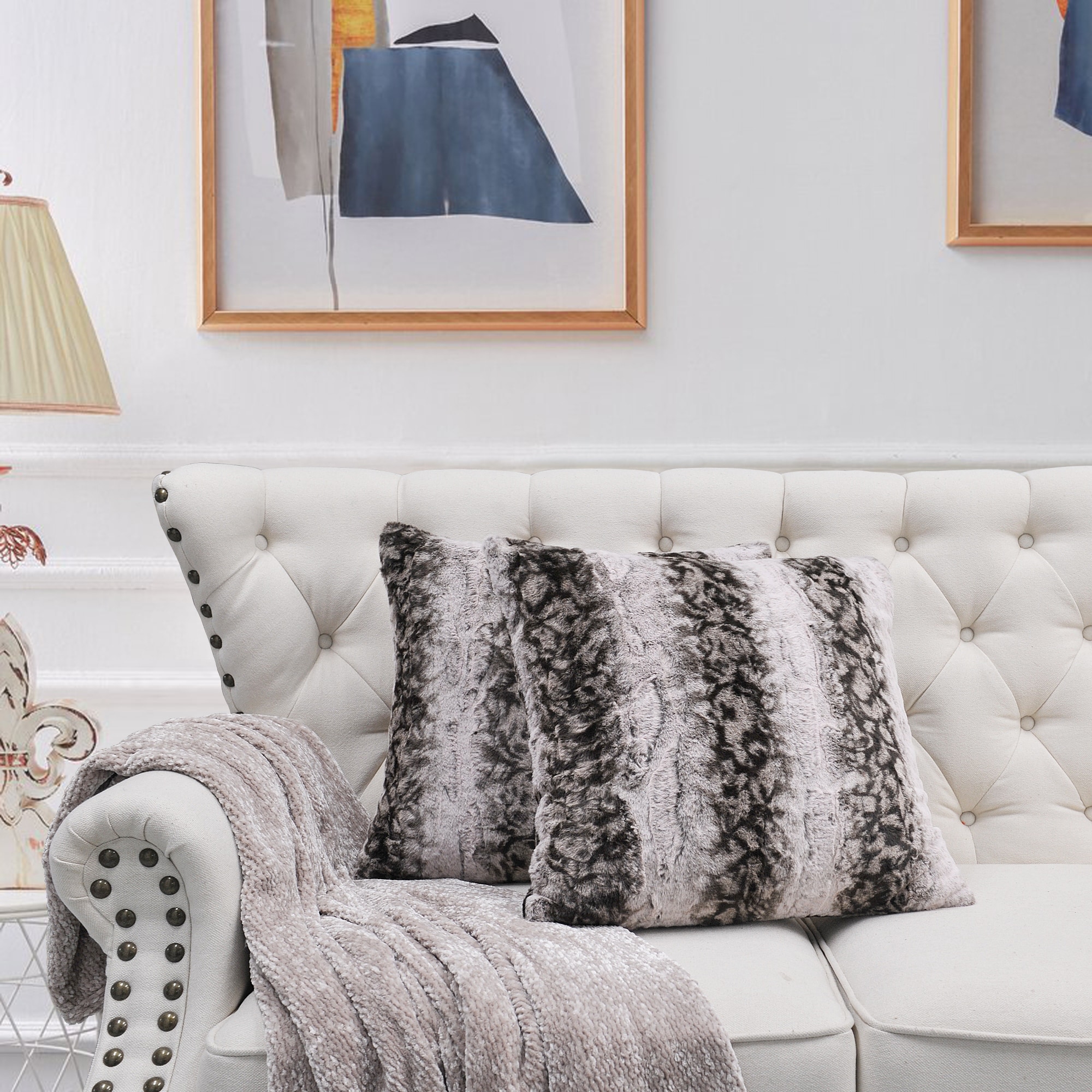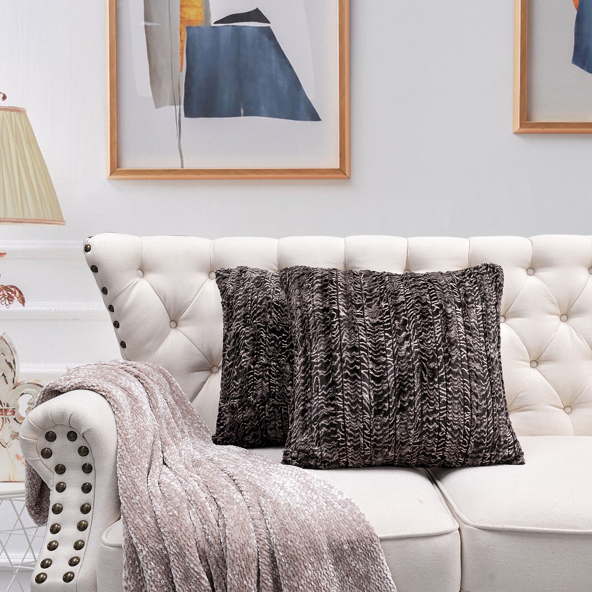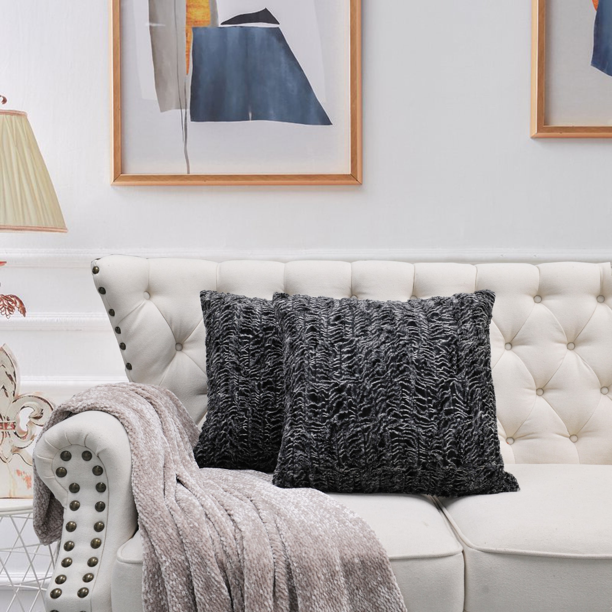 2pcs Plush FauxFur Decorative Throw Pillow Covers