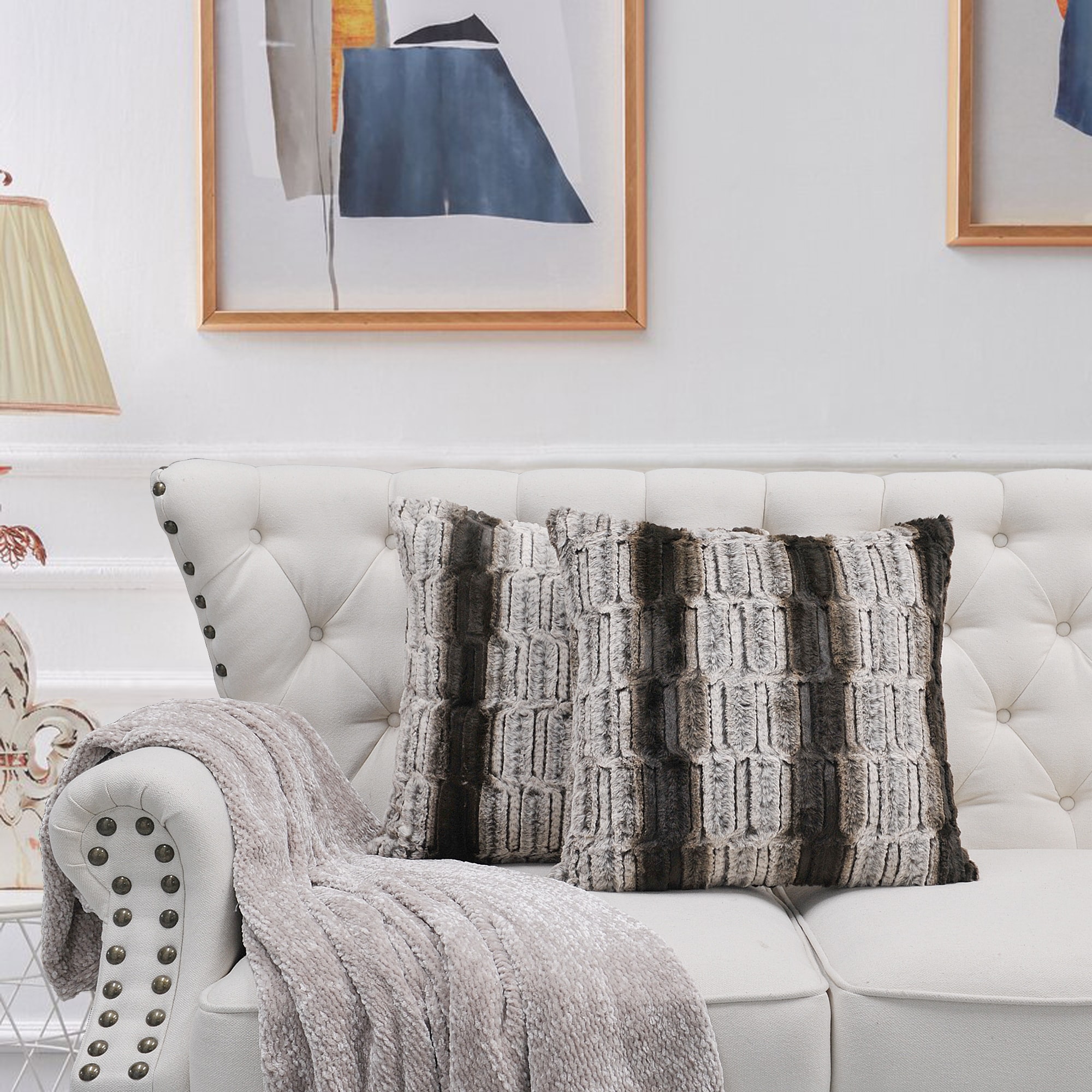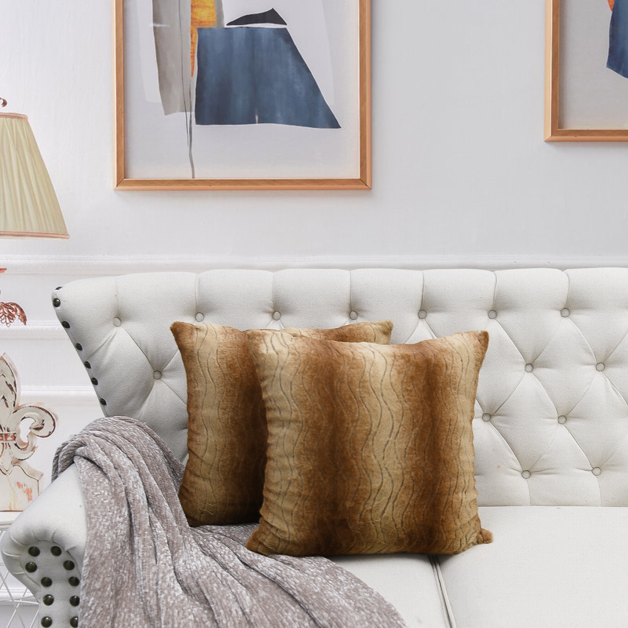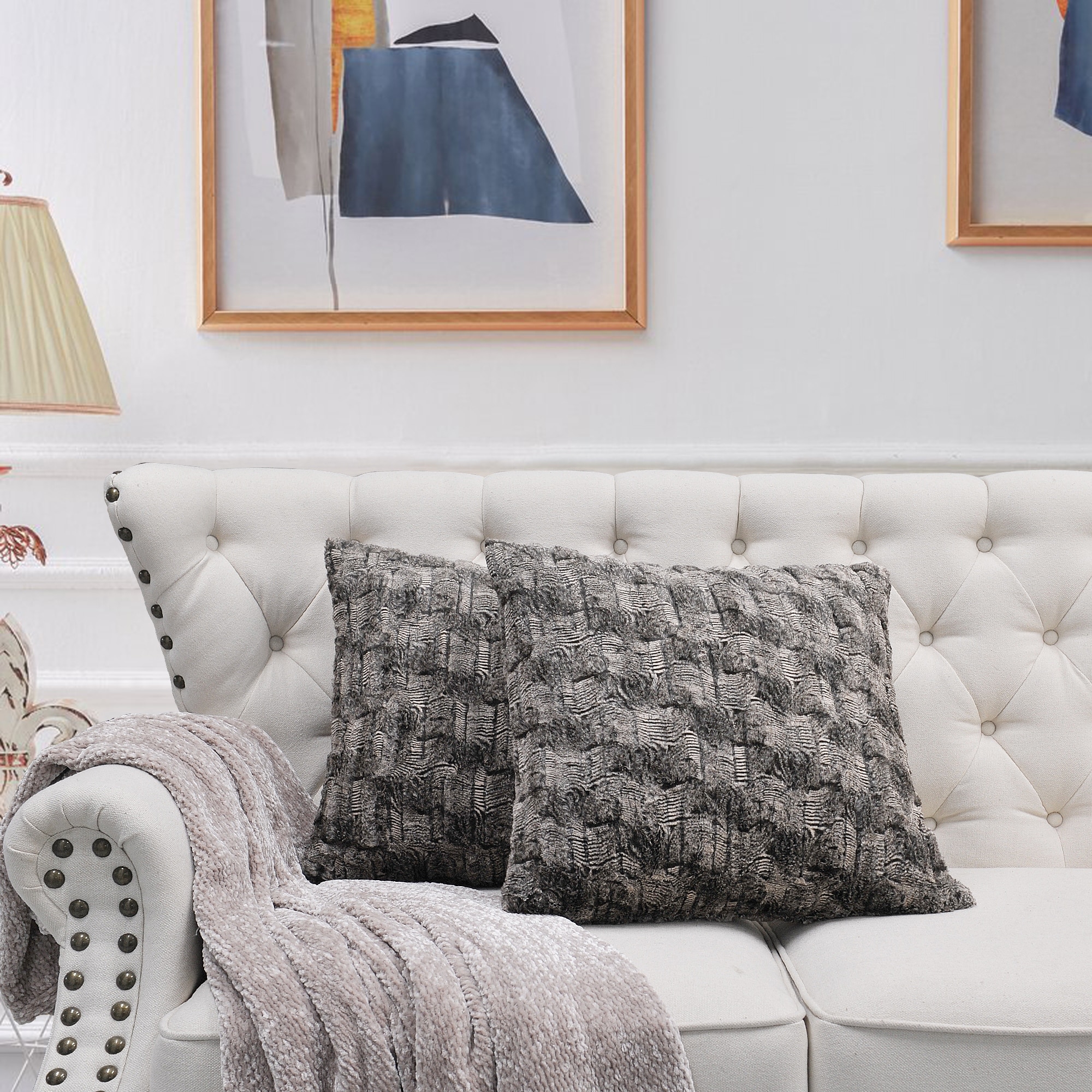2pcs Plush FauxFur Decorative Throw Pillow Covers