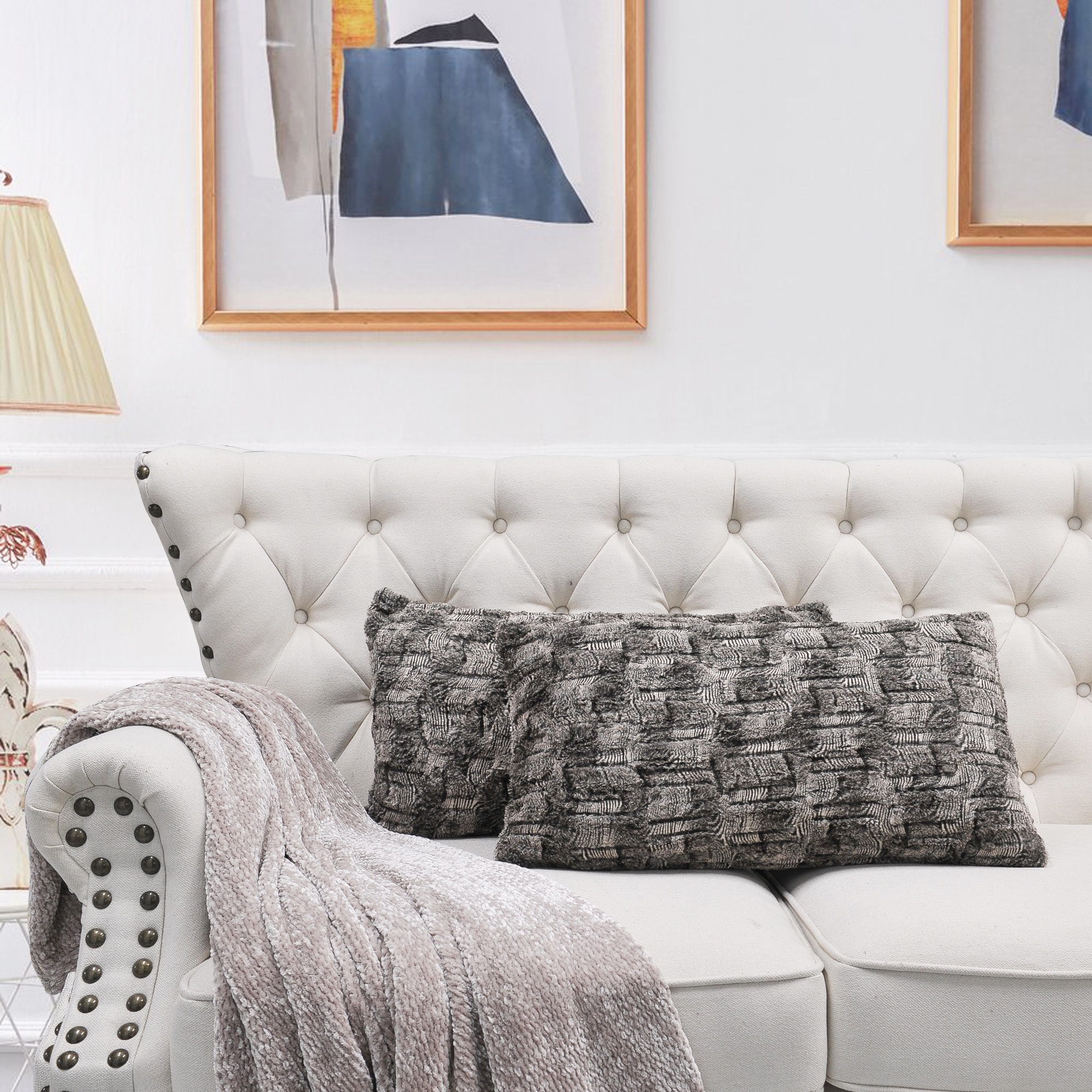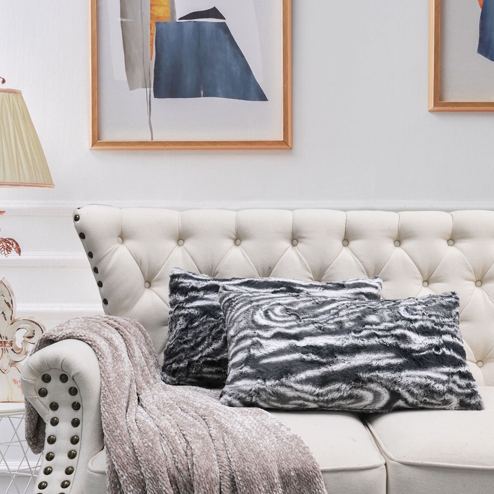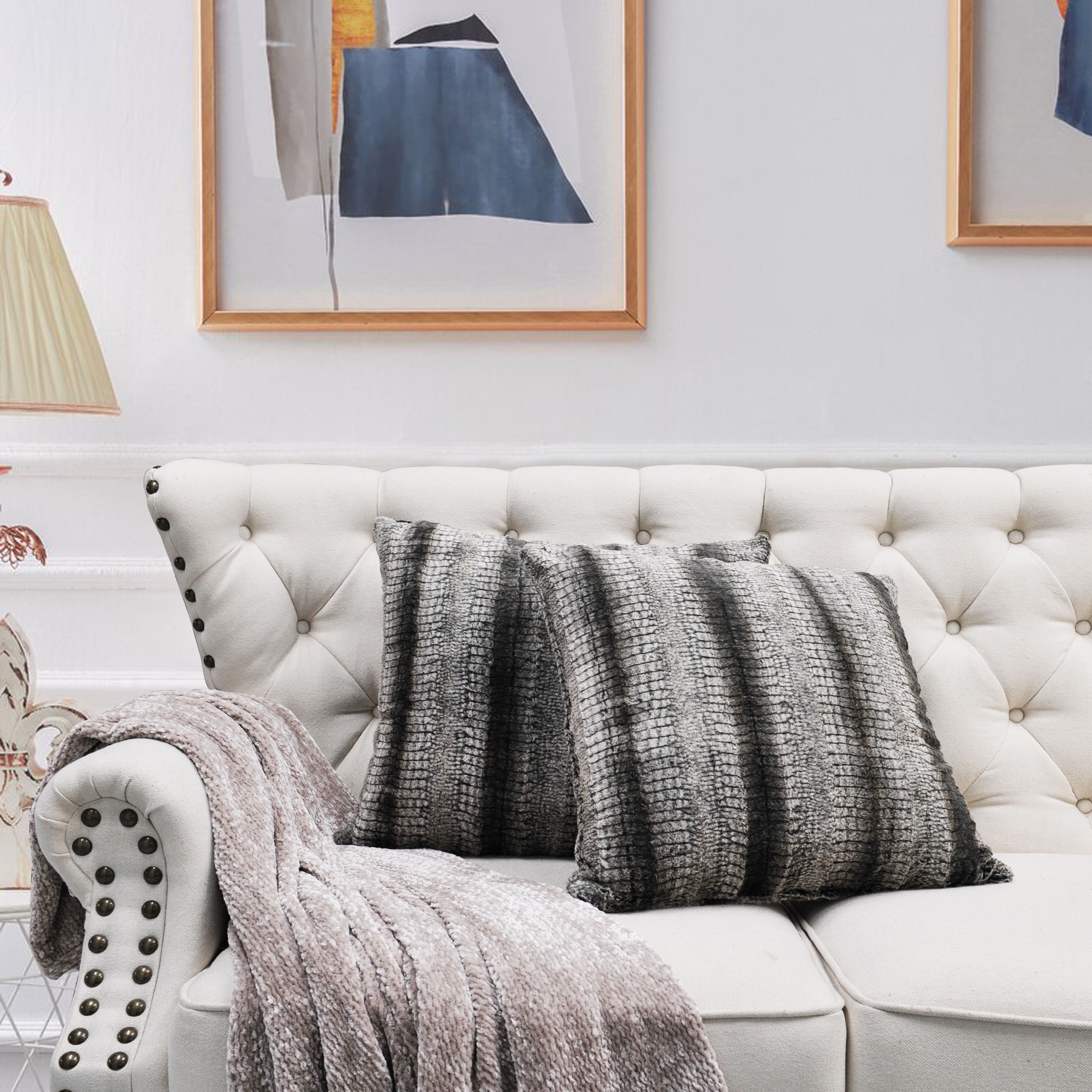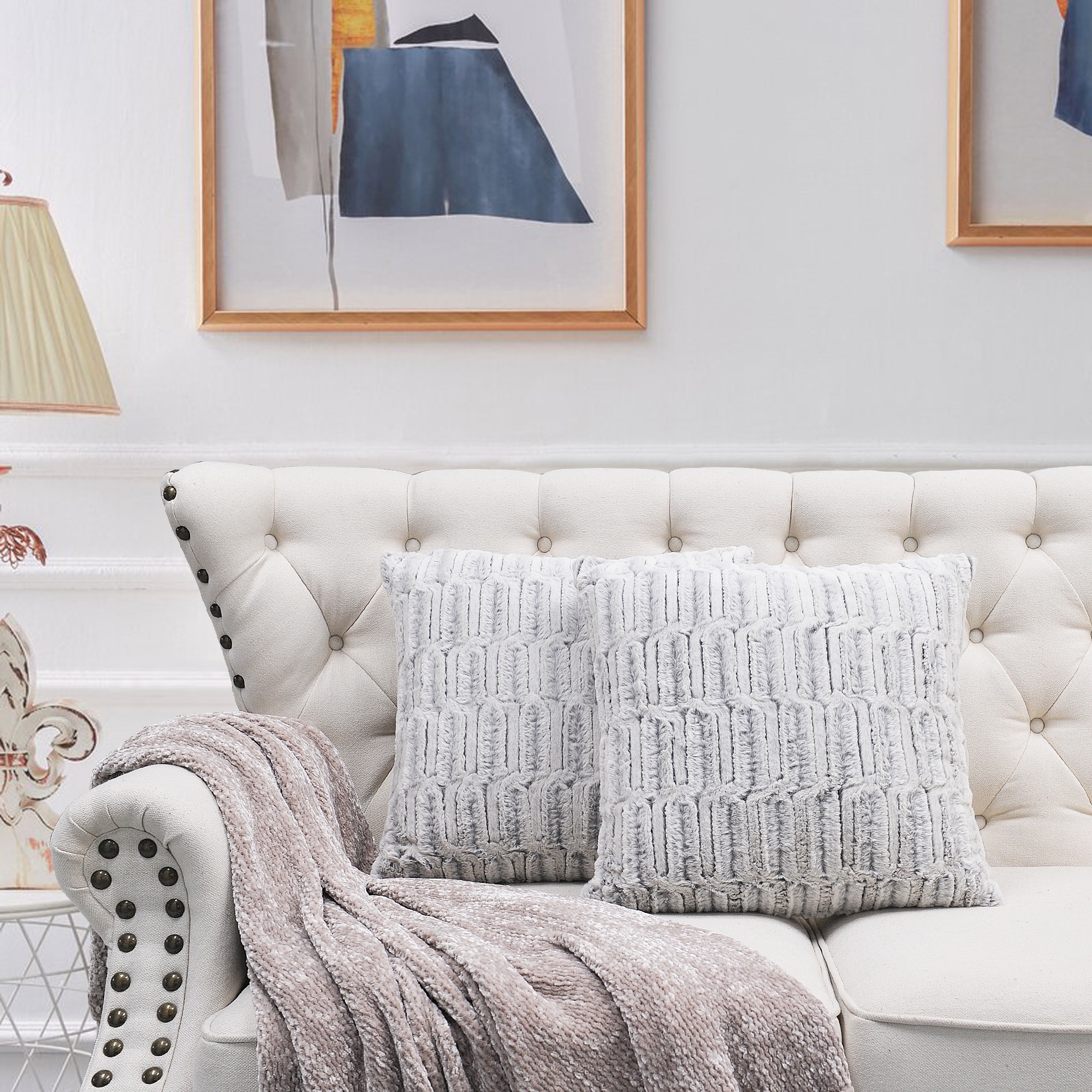 2pcs Plush FauxFur Decorative Throw Pillow Covers