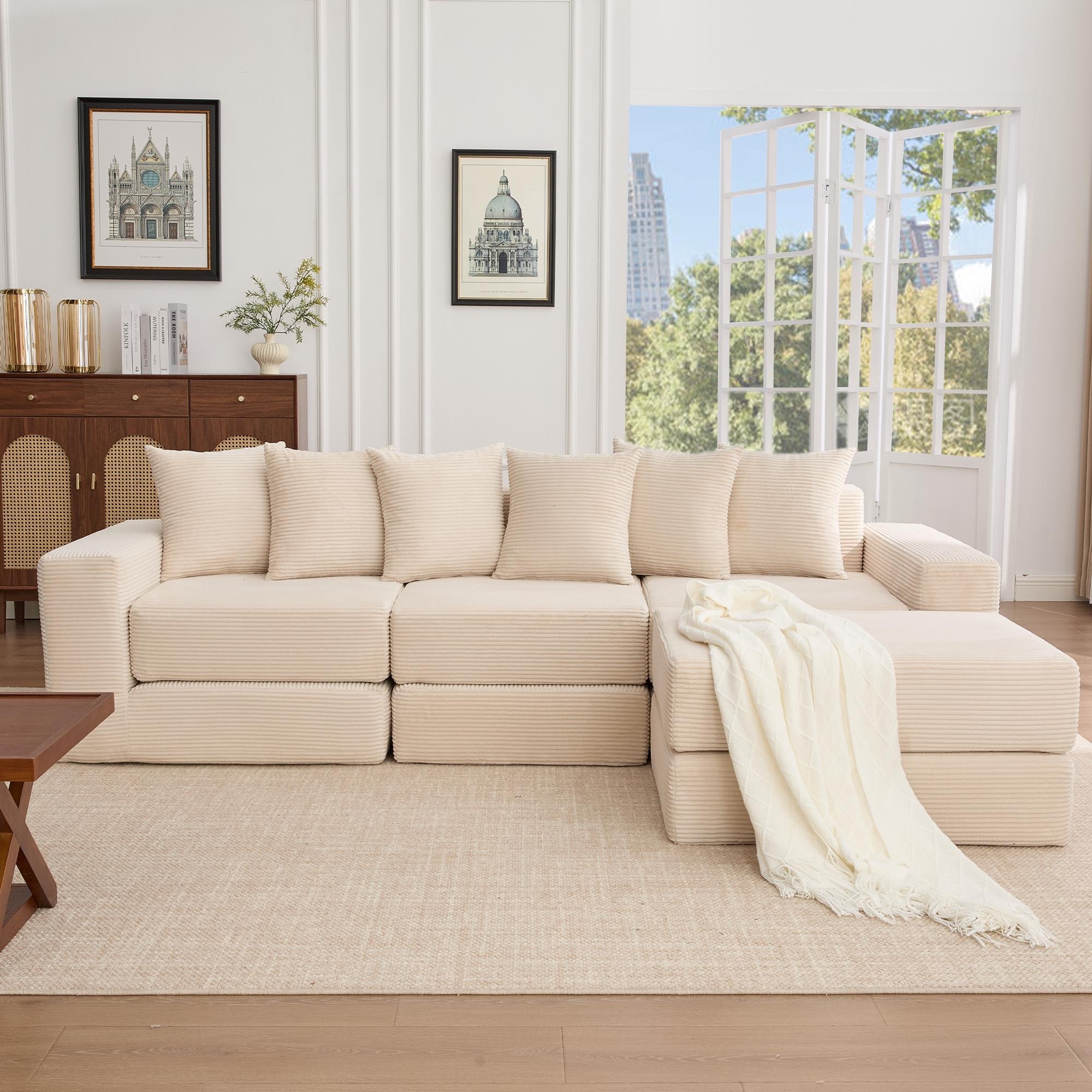 6-Seat Modern Corduroy Modular Sectional Sofa U-Shaped Convertible L-Shaped Design with Ottoman and Pillows