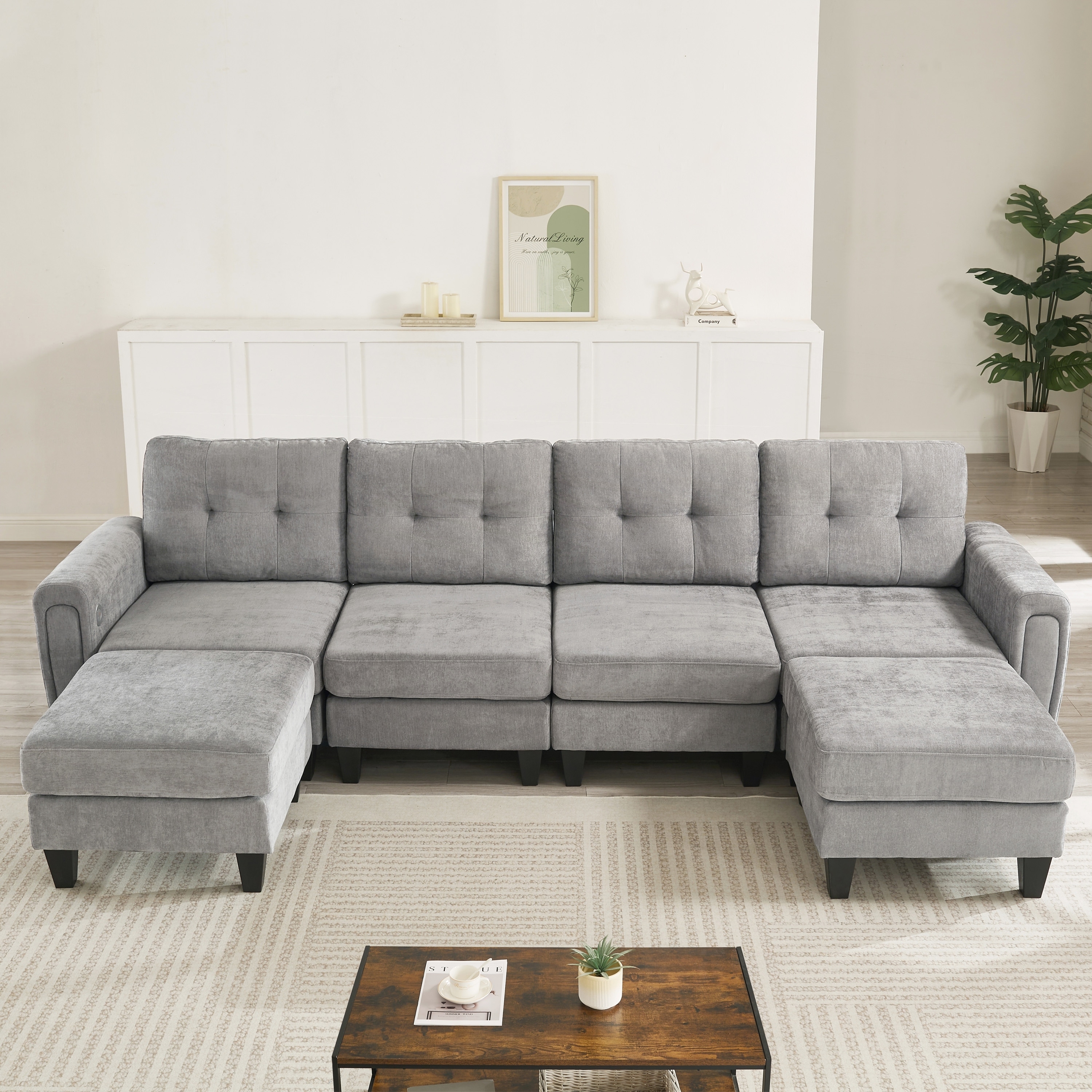 Product Features Freely Convertible Modular Sofa - This modular sectional sofa offers complete flexibility in configuration — it can be arranged into an L-shaped, U-shaped, or 4-seater sofa with separate ottomans, allowing you to customize the layout to…