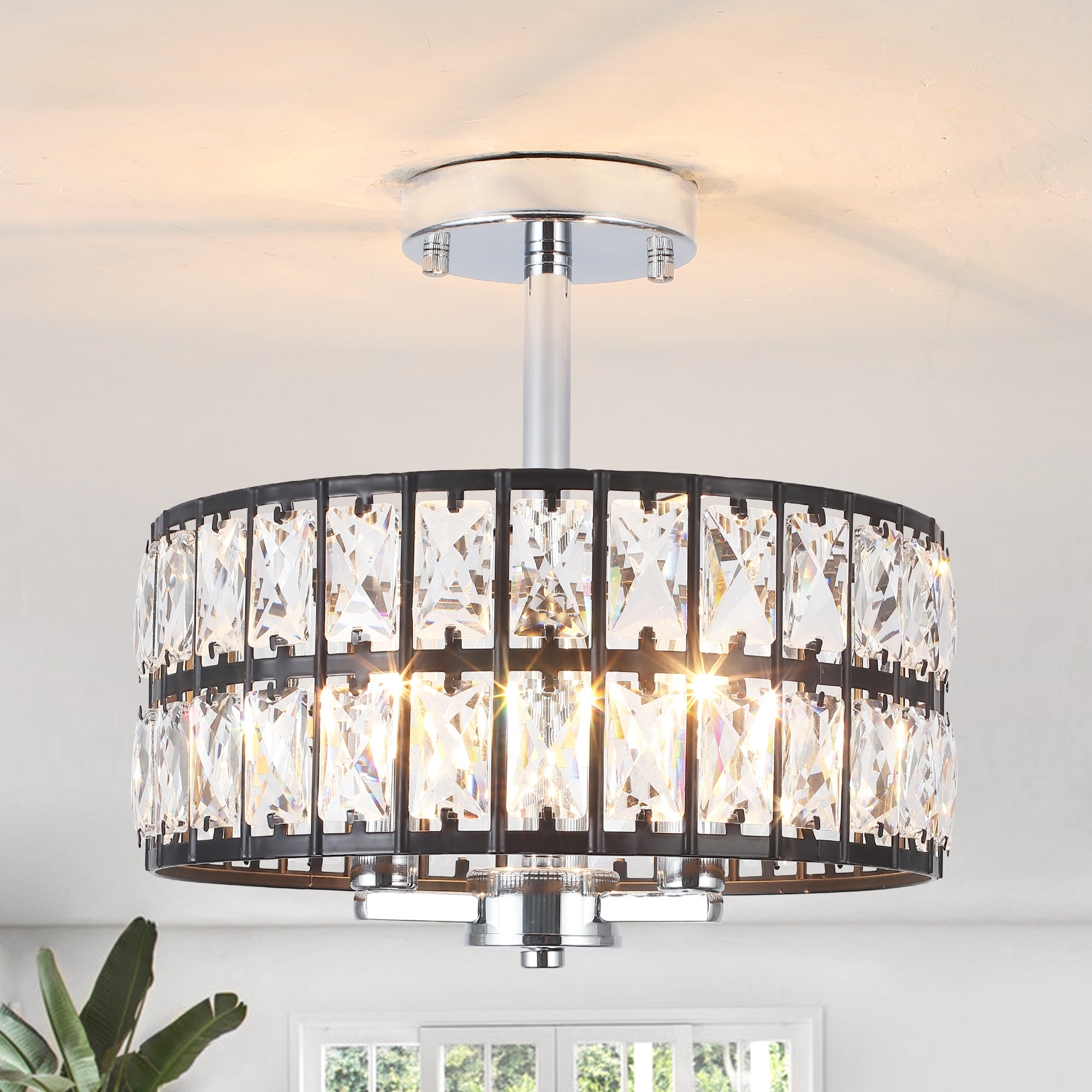 Add a touch of luxury and elegant atmosphere to your home with this shining crystal semi flush mount ceiling light. Crafted with shiny crystals and high-quality metal,this modern crystal ceiling light shows a modern-style visual effects.