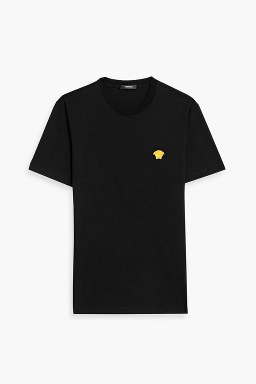Embroidered Cotton-Jersey T-Shirt - Black - Versace T-Shirts