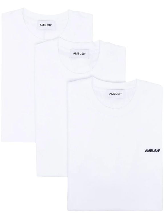 Men's Ambush Logo-Embroidered Cotton T-Shirt (Pack Of Three) - White - Short sleeve t-shirts White/black organic cotton lightweight jersey embroidered logo at the chest crew neck short sleeves straight hem pack of three Size: XS. Gender: Male....