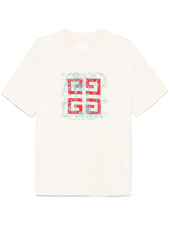 Embroidered 4G Logo Print T-Shirt - White - Givenchy T-Shirts
