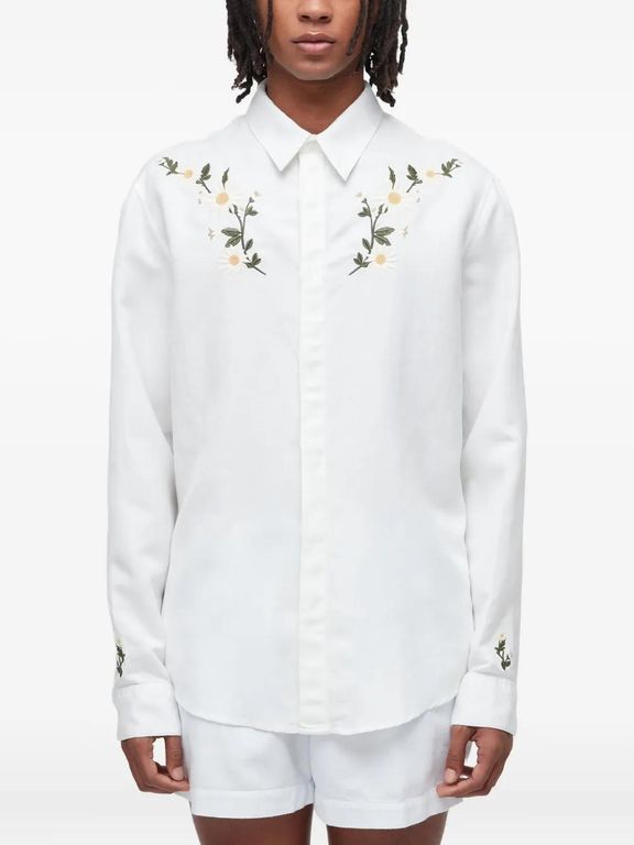 Men's Osklen Daisy Light Ml Shirt - White - Casual shirts White long sleeves floral embroidery button fastening classic collar straight hemline Size: P. Gender: Male. Material:Fabric.