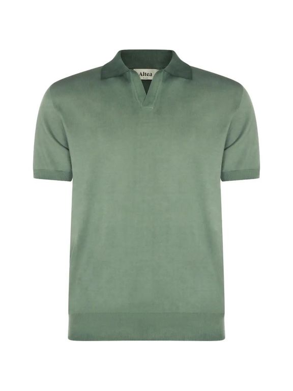 Men's Altea Short-Sleeved Cotton Polo Shirt - Green - Polo shirts Green cotton ribbed trim short sleeves V-neck polo collar Size: S. Gender: Male. Material:Cotton.