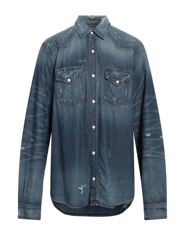 Men's Amiri Denim Shirt - Blue - Casual shirts Denim, worn effect, torn fabric, no appliqués, solid colour, medium wash, classic neckline, long sleeves, button closing, two breast pockets. 100% Cotton.