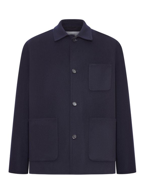 Men's Lardini Wool Overshirt - Blue - Casual shirts - Classic collar- Front button closure- Three front patch pockets- Long sleeves- Straight hem- Unlined- 100% wool- Color: Blue