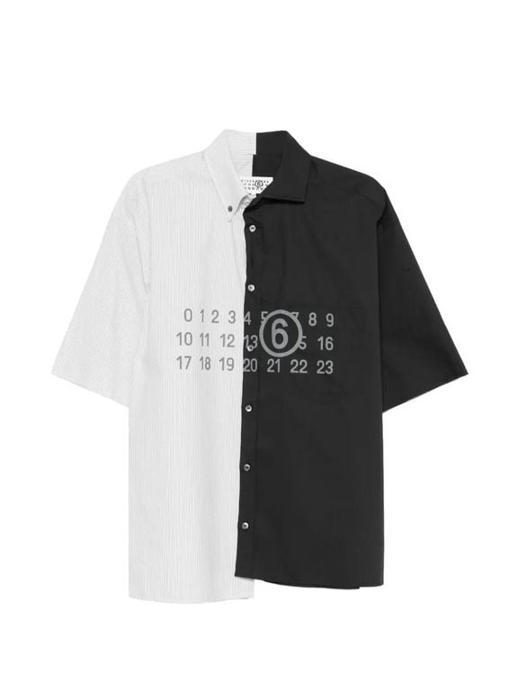 Men's MM6 by Maison Margiela Striped Paneled Shirt - Black - Casual shirts White pinstripe pattern panelled design chest patch pocket number print button fastening Size: 46. Gender: Male. Material:Cotton.