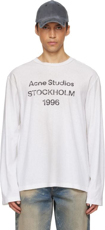 Men's Acne Off- Logo T-Shirt - White - Short sleeve t-shirts Organic cotton- and True hemp-blend jersey T-shirt. · Discoloration and subtle distressing throughout · Rib-knit crewneck · Logo printed at front · Dropped shoulders Supplier color: Dusty...
