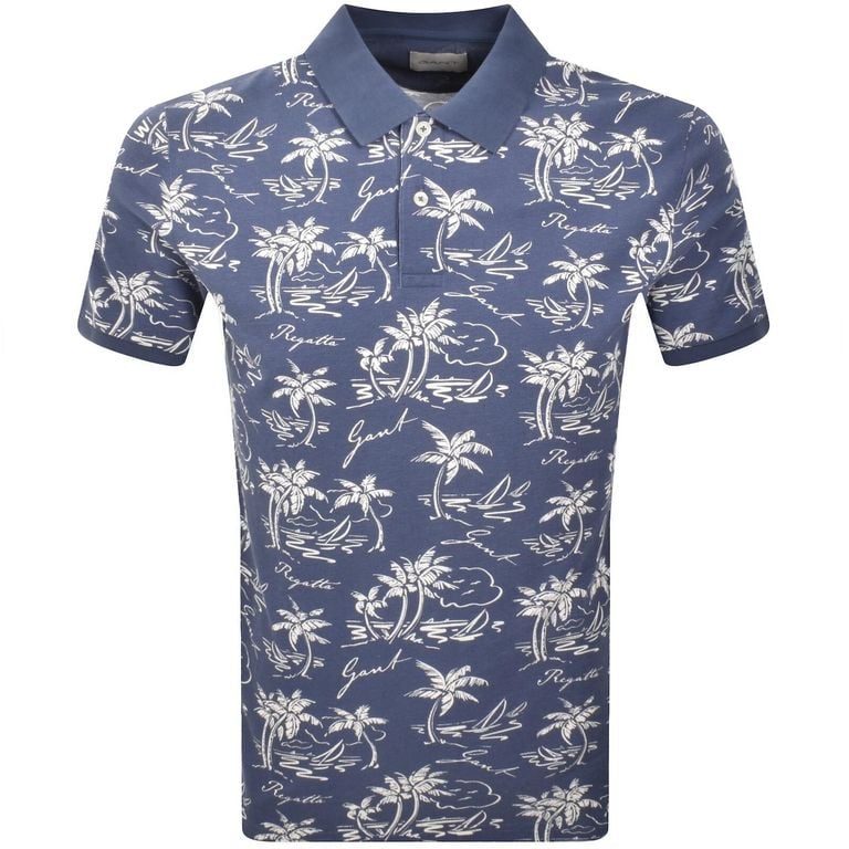 Men's Gant Island Print Polo T Shirt Dusty - Blue - Polo shirts Gant Island Print Polo T Shirt In Dusty Navy Regular Fit. An all over island print with a two button placket a ribbed polo collar and ribbed cuffs on the short sleeves. Side vents at...