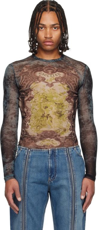 Men's Jean Paul Gaultier 'The Médaillon' Top - Black - Long sleeve t-shirts Semi-sheer nylon tulle top. · Graphic pattern printed throughout · Crewneck · Logo printed at chest and back · Locker loop at back collar Supplier color: Black/Vintage