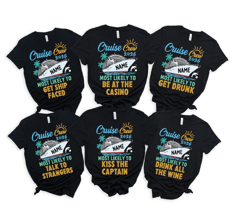 Get your whole crew ready for unforgettable memories with these fun and coordinated cruise squad shirts designed for group adventures at sea. Featuring bold, colorful designs with playful cruisethemed phrases for each member, these tees bring...