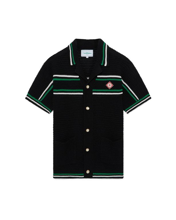 Tennis Short Sleeve Crochet Shirt - Black - Casablanca Paris Shirts