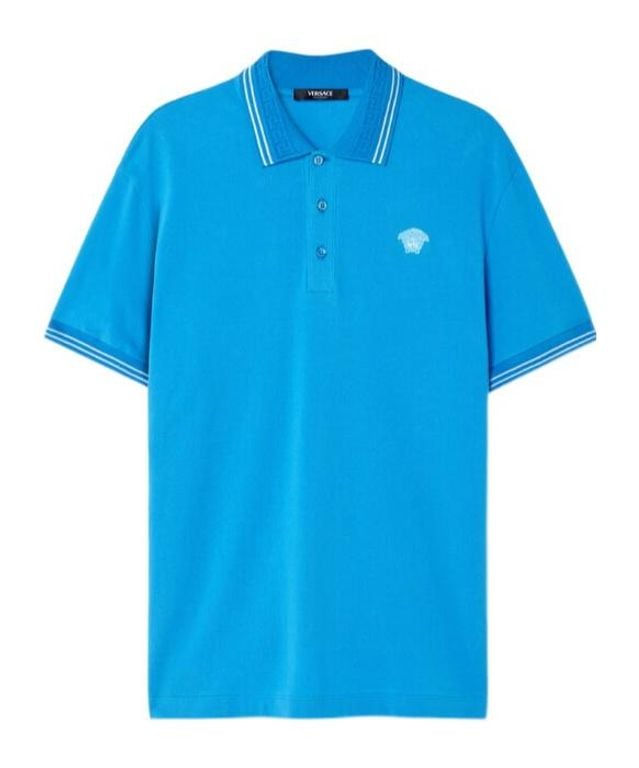 Men's Versace Medusa-Embroidered Short-Sleeved Polo Shirt - Blue - Polo shirts 100 Cotton Made in Tunisia Designer Model Number 10139101A09860 Designer Colour 1VG20