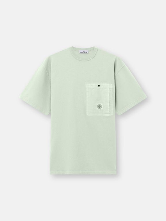 Men's Stone Island 2100004 Combed Organic Cotton Jersey - Green - Short sleeve t-shirts Short-sleeve T-shirt in combed organic cotton jersey, featuring a cotton ripstop chest pocket with snap and Compass logo patch. Garment dyed. Short-sleeve...