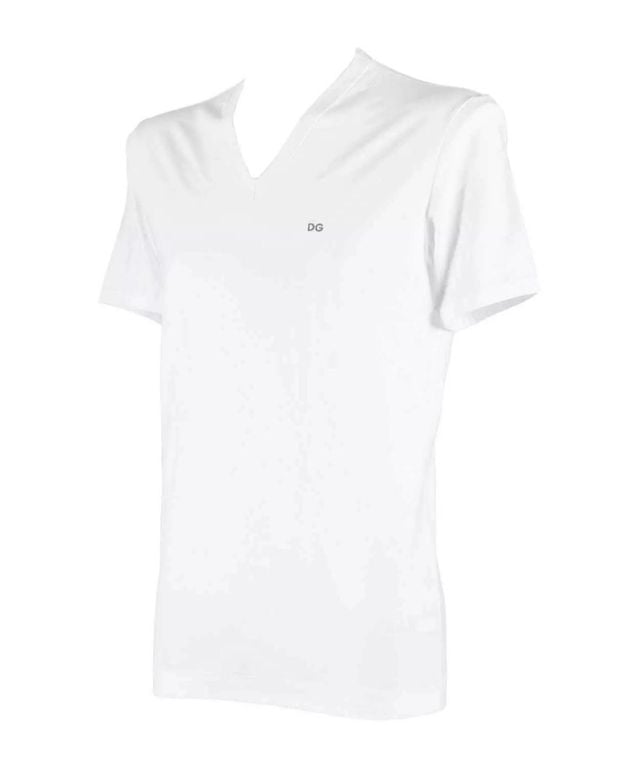 Men's Dolce & Gabbana Short-Sleeved T-Shirt - White - Short sleeve t-shirts V-neck, stretch cotton, logo on the front.