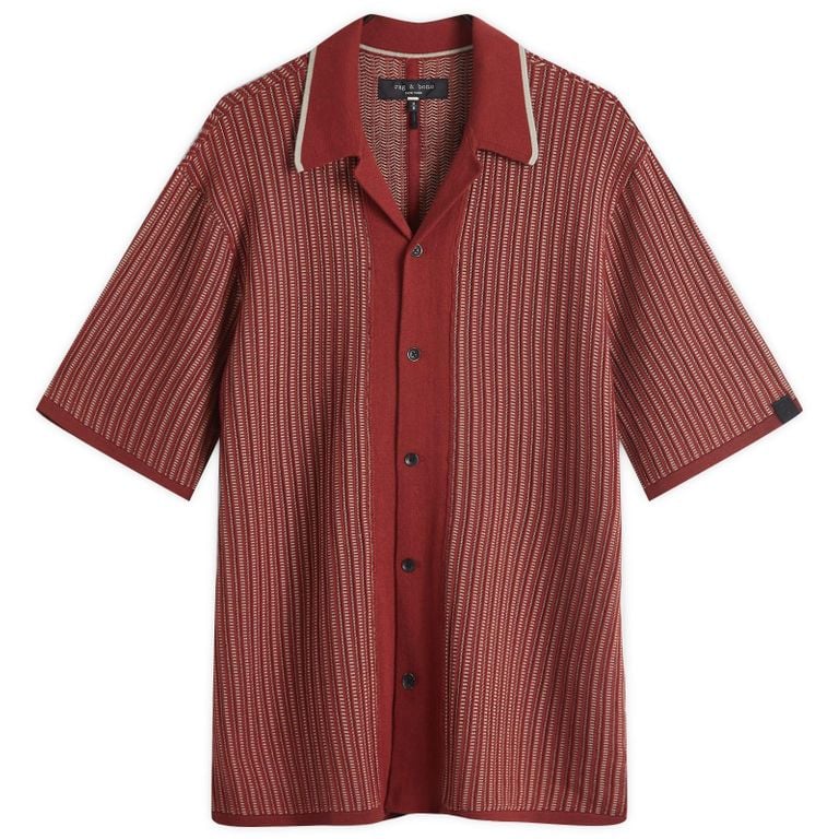 Men's Rag & Bone Harris Knit Vacation Shirt - Red - Casual shirts Take your style to the next level with the Rag & Bone Harris knit vacation shirt, drawing inspiration from vintage styles. Adorned with a retro stitching detail throughout, leaving a...
