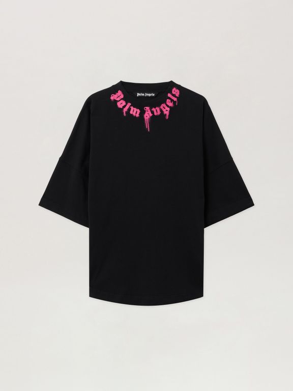 Spray Neck Logo T-Shirt - Black - Palm Angels T-Shirts