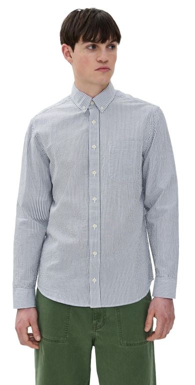Men's Taylor Stitch Jack Seersucker Shirt - Gray - Casual shirts Fabric: Lightweight, non-stretch seersucker. Stripe print. Button-down collar. Long sleeves with button cuffs. Button placket. Patch breast pocket. Shell: 100% cotton. Wash cold....