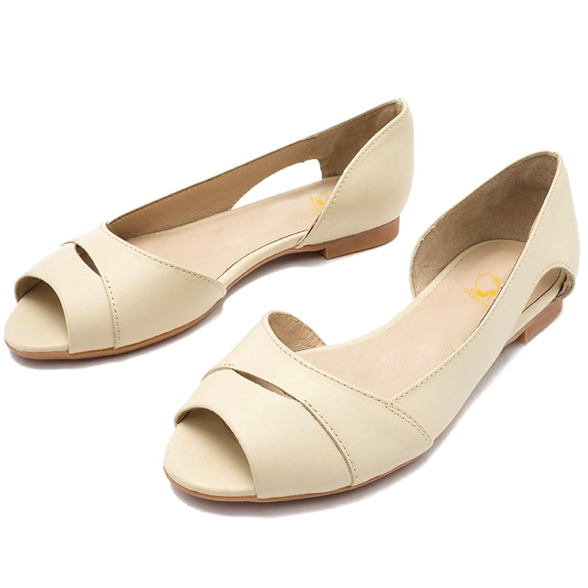 SHODENSE Women Open Peep Toe Flat Shoes Slip On Cutout Flat Sandals Round Toe Matte Leather Ballet Flats Office Work Comfort Flat Heel Summer Shoes