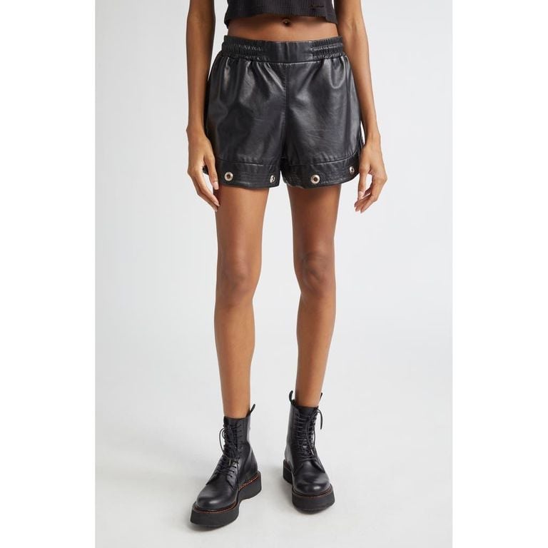 Women's R13 Grommet Detail Leather Gym Shorts - Blue - Mini shorts Signature rebellion cuts through athletic tropes in these gym shorts imagined from supple leather and streaked with silvertone grommets, turning laid-back into daringly elevated.