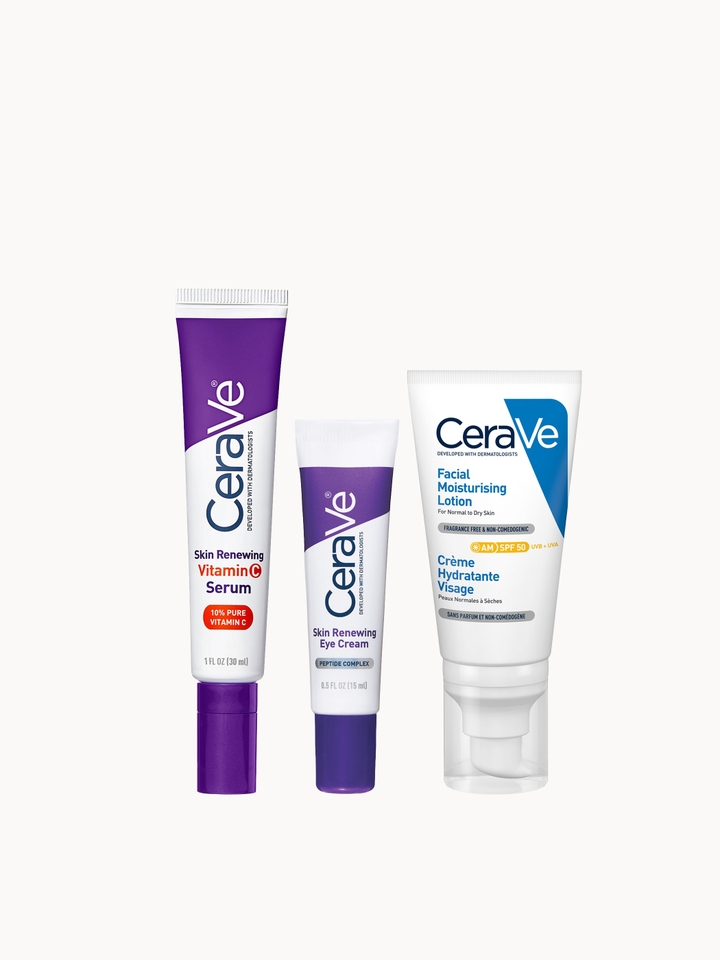Discover CeraVe’s Daily Care Routine, a three-piece set that targets the first visible signs of ageing. Set Contents: Skin Renewing 10% Pure Vitamin C Serum with Ceramides 30ml This lightweight serum utilises l-ascorbic acid, the purest form of vitamin C, to help minimise the look of fine lines,