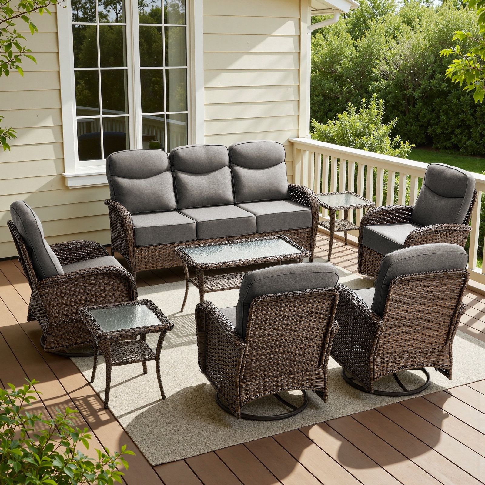 Gymojoy 7 - Person Outdoor Wicker Furniture Conversation Patio Set with Plush 6" Cushions, All-Weather Comfort