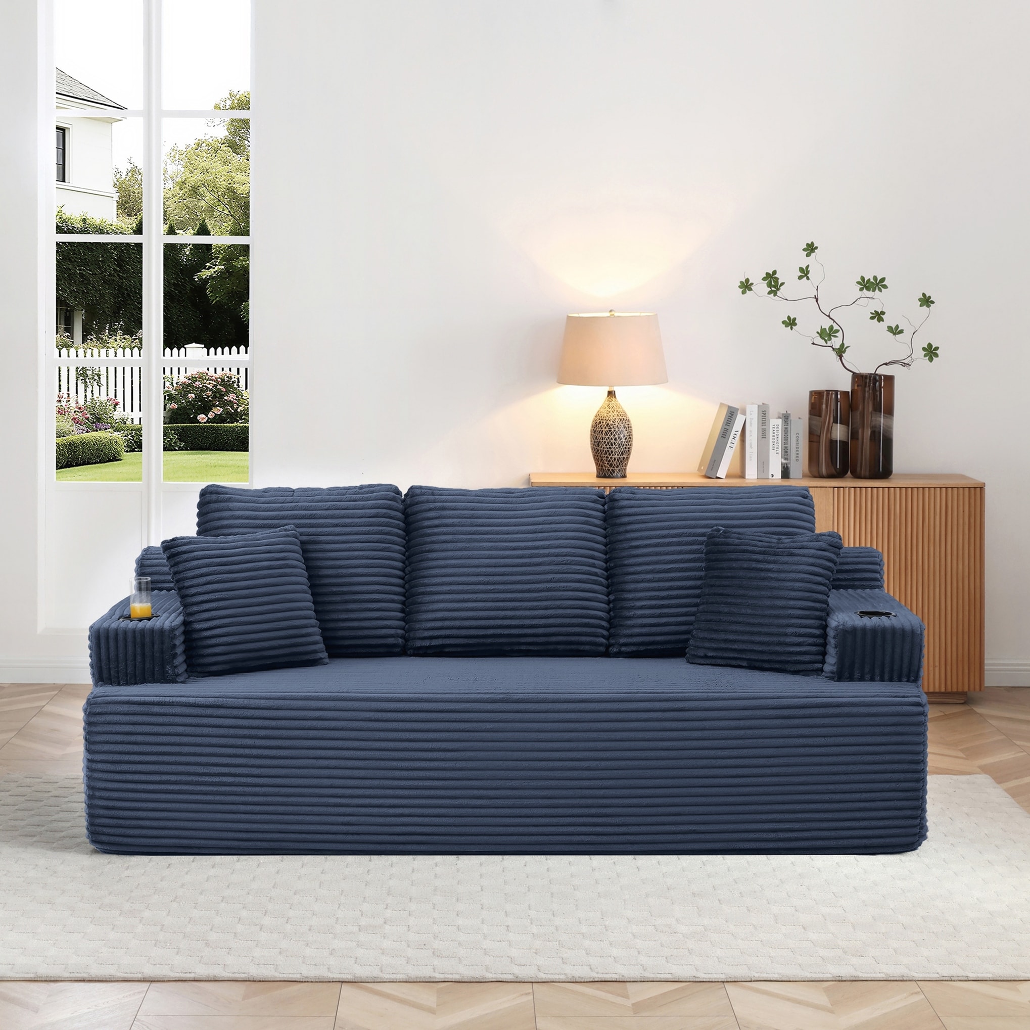Corduroy Pull-out Bed Recline Chair Convertible Sleeper Sofa with 2 USB Port