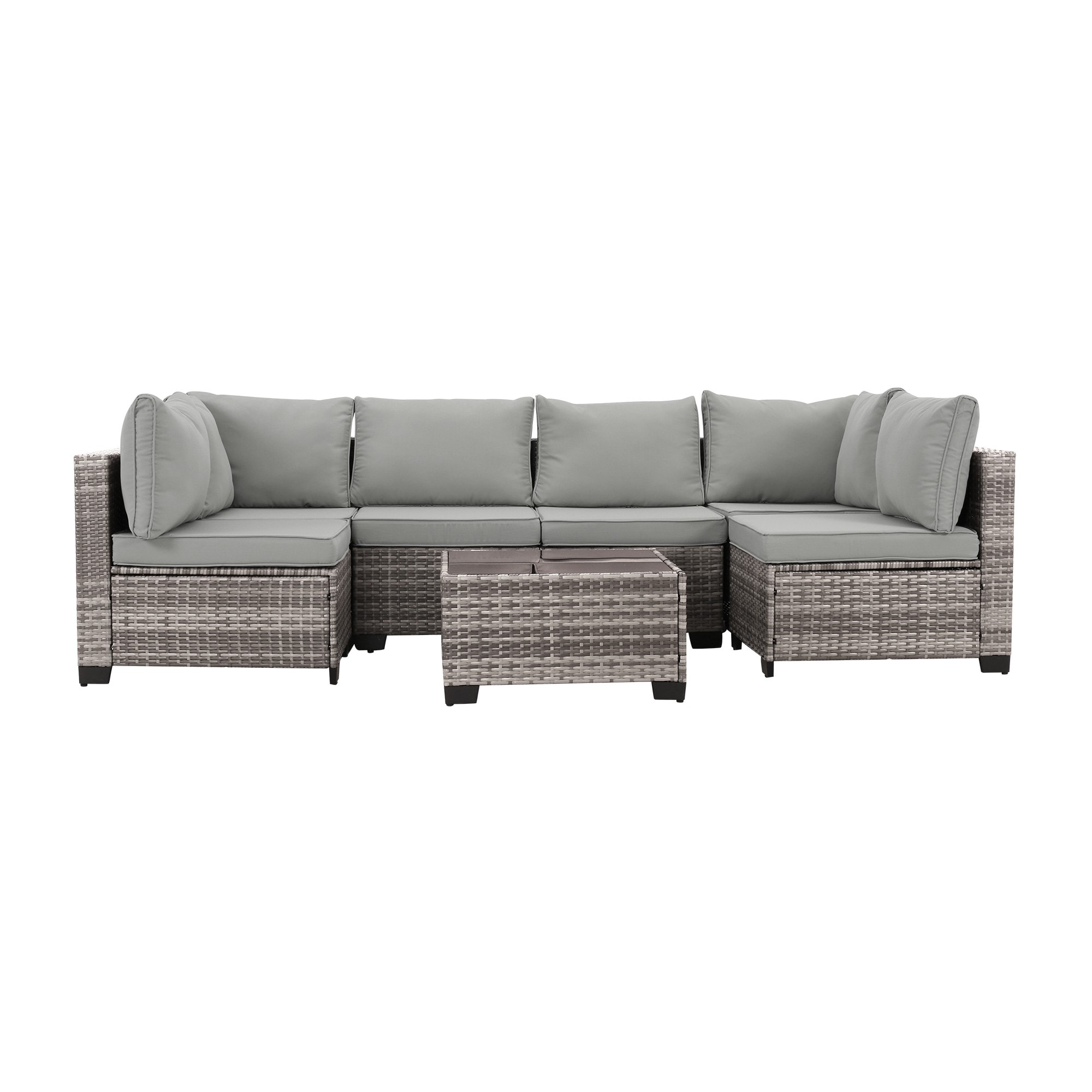 Production: Introducing this Patio Furniture Set, a stylish and comfortable outdoor wicker furniture set designed to enhance any garden, poolside, or backyard space. This 7-piece sectional sofa couch conversation set features a versatile design.
